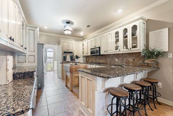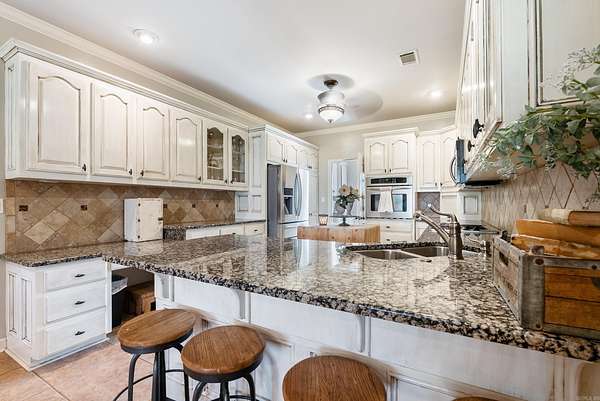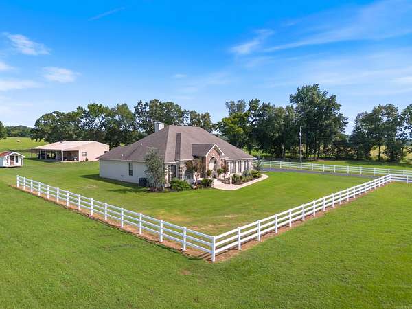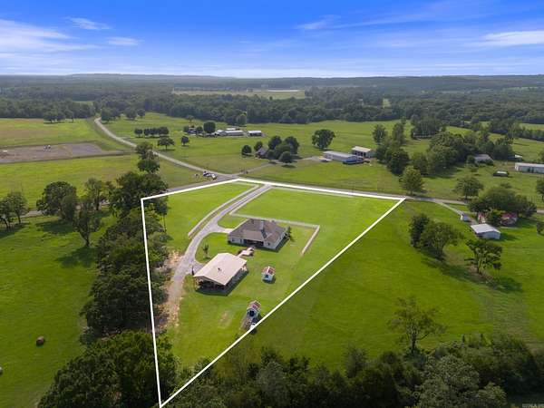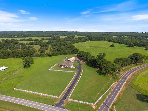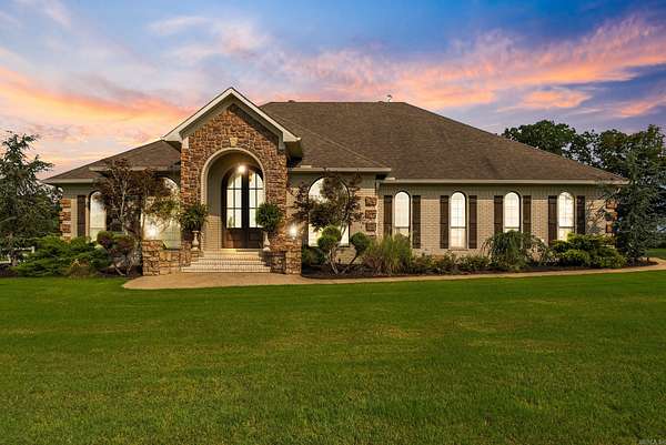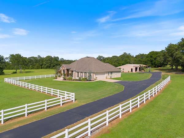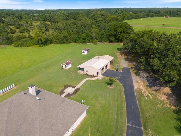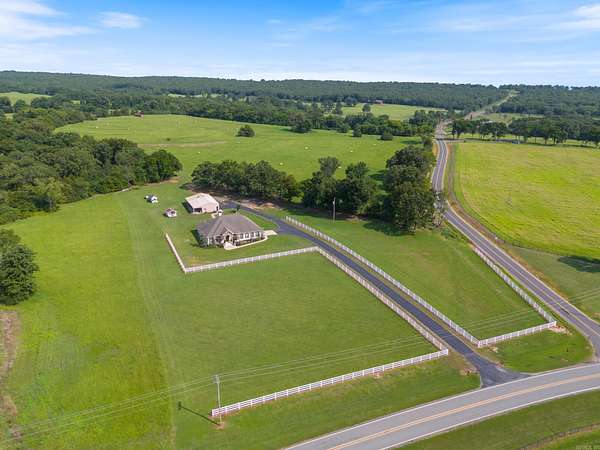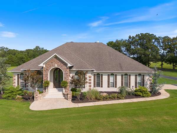 Seller offering 10,000 towards closing costs or rate buydown w/accepted offer! Situated on 3.22 acres, this stunning residence offers luxury & privacy. This one of a kind property has it all with no restrictions. Boasting 4BR/2.5BA, & 2,813 sqft, this home is the perfect place to call your own. The property welcomes you w/ a beautiful white vinyl fence, fully paved driveway, & extensive lush landscaping. The grand entry features gorgeous rock detail, stunning 11 ft arched mahogany doors & beautiful arched windows w/custom plantation shutters. Step inside to 12 ft ceilings & custom french country built-in entertainment center. Cozy up by the wood burning fireplace that is conveniently vented to warm bedrooms. The kitchen features granite countertops & stainless steel appliances. Enjoy evenings on the spacious covered back porch. The 2-bay 30x40 shop w/ a 1000 sqft lean-too is perfect for all your hobbies, projects & extra storage. The home acquires an in ground tornado shelter & extra storage/cabinet space in the garage & an in ground sprinkler system. Secluded, yet accessible, this home is located in top rated Greenbrier School District.