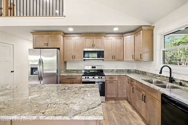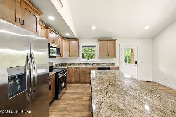 Welcome to Freedom Way! This newly constructed home blends modern design with timeless charm, all while offering the flexibility and freedom you've been looking for. Inside, you'll find 3 spacious bedrooms plus a versatile loft with an office-perfect for working from home or creating your dream hobby space. The primary bedroom features its own full private bathroom, while the additional full bath is conveniently located in the hallway near the secondary bedrooms and laundry area. Soaring ceilings, waterproof flooring, and a bright open layout set the stage for everyday living and entertaining. The kitchen is a true centerpiece, with sleek new appliances, plenty of counter space, and an island ideal for serving family and friends. Step outside to enjoy the wraparound porch, where you can relax and take in the privacy and views of nearly an acre of land. Located just 2 minutes from the Nolin Estates boat ramp, this property is a rare opportunity for both homeowners and investors short-term rentals like Airbnb are permitted here. Even better? Additional lots are available if you'd like to build another home, expand, or add on to this space, making it a perfect spot to grow into your future plans. If you're looking for a fresh start, a weekend retreat, or an investment property near the lake, this home checks all the boxes.