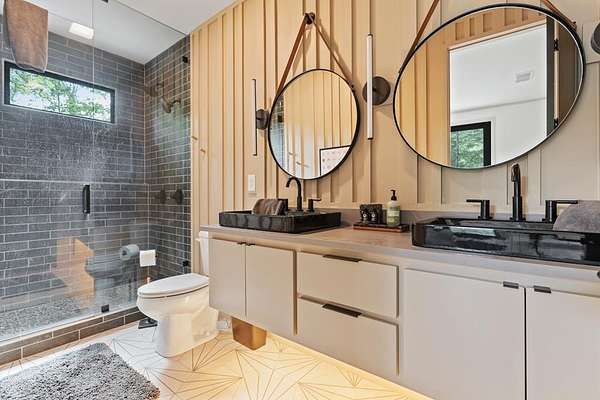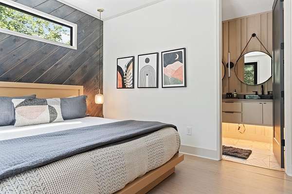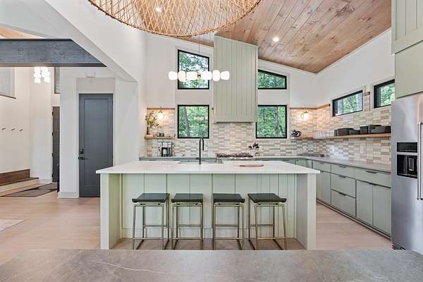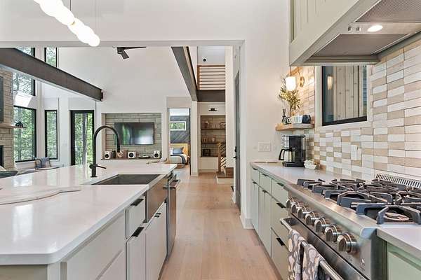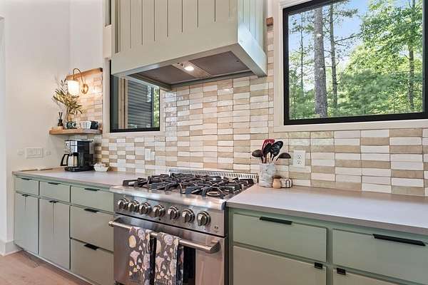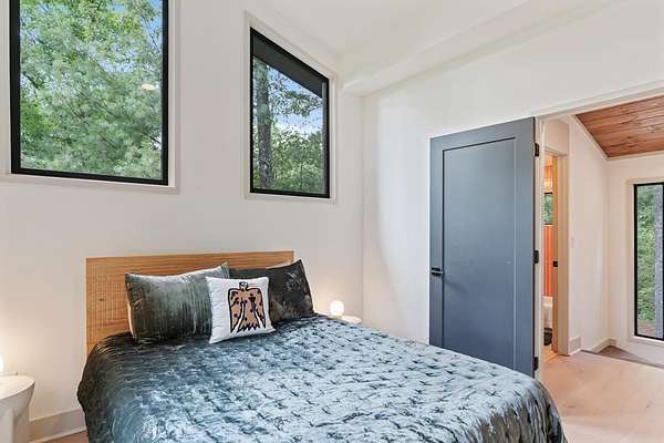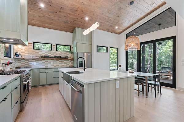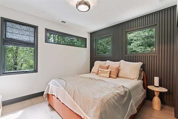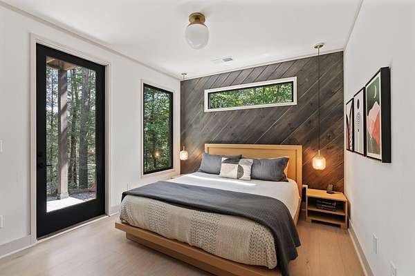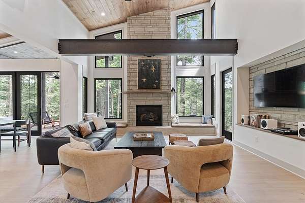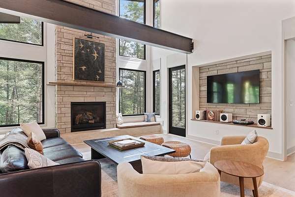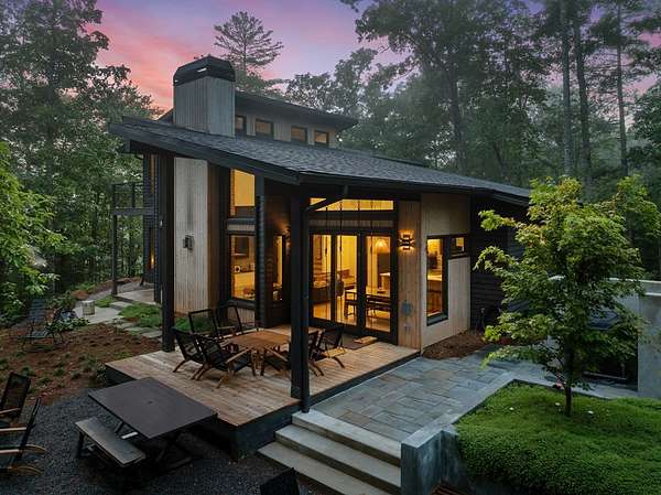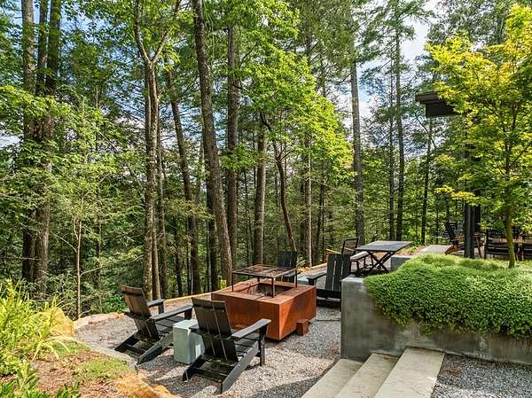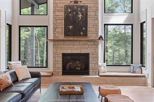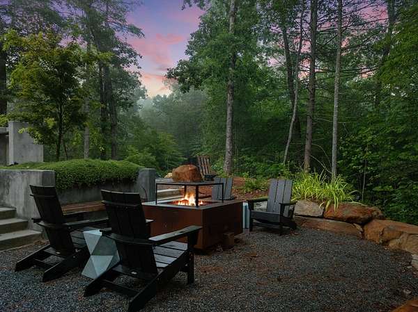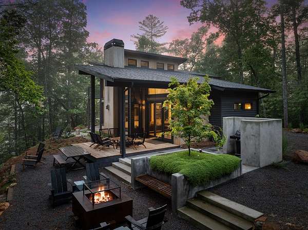 Wake up to the sound of your own private waterfall! Perched above a cascading mountain creek, this striking modern retreat delivers an experience defined by moving water, clean architectural lines, and total immersion in nature. Fall asleep to rushing water and enjoy morning coffee overlooking the falls from your private mountain sanctuary. This thoughtfully designed 4-bedroom, 3-bathroom home blends mid-century inspired architecture with warm wood tones, expansive glass, and crisp modern finishes. Large windows frame the forest canopy and flowing creek below, filling the open-concept living space with natural light. A dramatic fireplace anchors the main level, while the luxury kitchen features custom cabinetry, generous prep space, and a gas range--perfect for entertaining after a day outdoors. The primary suite offers a true retreat, complete with a custom walk-in tile shower featuring double shower heads, creating a spa-like experience. The additional bedrooms and baths are equally well-appointed with contemporary finishes and thoughtful design. Outdoor living is where this property truly shines. Expansive gathering spaces are positioned to capture the sights and sounds of the waterfall. Soak in the hot tub, relax in the oversized hammock, gather around the fire pit, or step down to the creek for fly fishing in stocked trout waters within the Watersong community. Located just minutes from the renowned Pinhoti and Bear Creek trail systems, offering some of the best mountain biking and hiking in North Georgia, this home delivers rare access to adventure while maintaining exceptional privacy. A design-forward mountain retreat where modern luxury meets cascading water and year-round outdoor living.