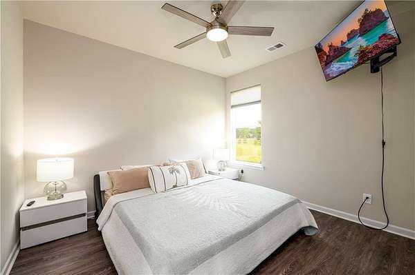 Modern Farmhouse sitting on more 2 plus acres of serene land. Less than two years young ranch style home that is almost brand new. This home offers the perfect blend of tranquility and convenience, making it an ideal location for anyone seeking comfort and modern living in the Good Hope and Monroe area. Monroe is known as one of Georgia's most civil-minded and cultured smaller cities. This home provides its owner with a beautifully crafted floor plans in a peaceful, small-town setting. Technology savvy buyers will indulge the automation in almost all aspects of this SMART home. Added recess lights to the exterior soffits that is timer controlled and Google Smart thermostat are some of the additions above builder grade. All bedrooms are on one level. Kitchen loaded with tons of upgrades, quartz countertop, soft-close drawers and cabinets, white cabinetry and a large farmhouse sink. A luxurious master bath with his and hers vanities, a spa-like shower; custom closets throughout the house. Avid fitness enthusiasts, you have an added exterior workout space that is lined by heavy duty gym grade rubber flooring and is loaded with fitness equipment. Beautiful outdoors seating in the covered back porch to enjoy morning coffee or afternoon drink. Huge yard to add your pool, swing set, trampoline, or whatever you imagine of it.