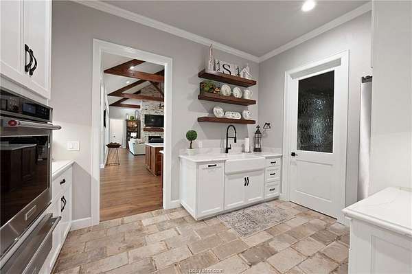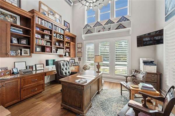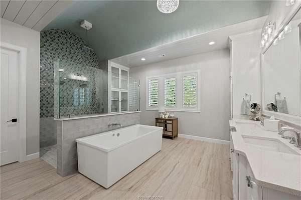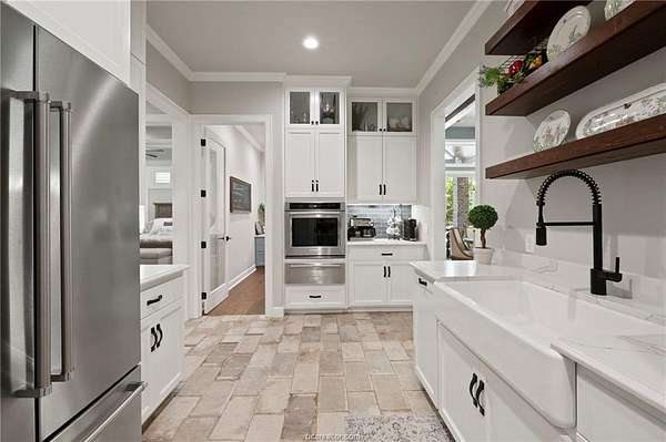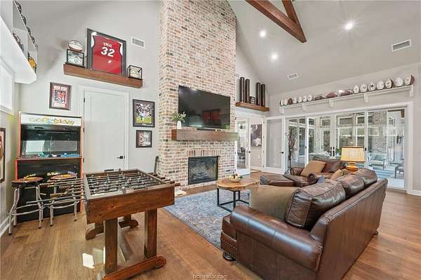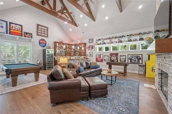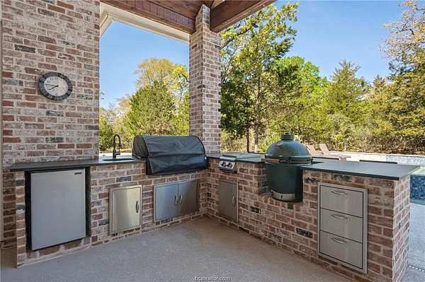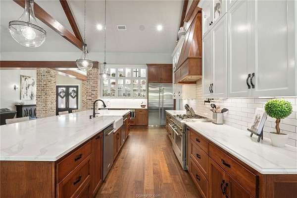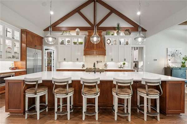 Builder's personal home with every amenity imaginable! Located on a large wooded 4.1 acre lot with amazing curb appeal featuring extensive landscaping, extra wide circular drive & large covered porte cochere this home offers a dramatic elevation with wooded privacy. The dramatic entry beckons guests into the floor plan offering 6,700 SF with 5 spacious bedrooms, 5 & a half baths, 3 living spaces, 2 dining areas, a large office + additional smaller study & a large open concept top of the line kitchen with incredible walk-in butler's pantry. Appliances include Thermador commercial range, two dishwashers, second oven, ice maker, pot filler, built-in Sub-Zero refrigerator & more! Living areas include a family room with a beam accented cathedral ceiling and stone fireplace, a huge game room with large wet bar & a 3rd private living area. The private primary suite offers a spa like bathroom with huge walk-in shower, an enormous closet and a private workout room. The outdoor entertaining space offers a sprawling patio complete with impressive outdoor kitchen overlooking the resort style pool & spa with a tanning ledge & waterfall. The over-sized 3 car garage has a Stampede coated floor &has a separate large storage closet. A 3-car porte cache off of the front of the garage offers even more covered parking. A large mud room open to a spacious laundry room with extensive cabinet storage. Extensive storage, detailed moldings with high end finishes and appliances throughout!