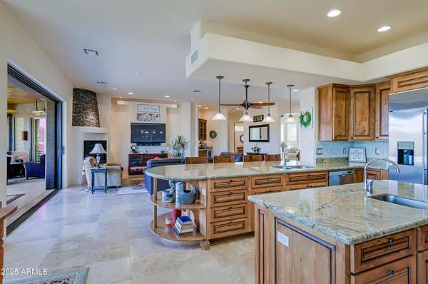 Luxury Estate with Breathtaking 360 degrees Views - No HOA! Discover unparalleled luxury and privacy in Carefree. This custom-built estate sits on 1.706 acres, offering 7,493 sq. ft. of exquisite living space and over 12,000 sq. ft. under roof-a true architectural masterpiece designed for comfort and entertainment. With two separate living levels, this home is ideal for corporate retreats, multi-generational living, or hosting guests in style. Features include: Expansive 10+ car garage space (2,747 sq. ft.) with dual driveways and over/under garages, 400-amp electric service to support all modern conveniences, Two full kitchens & two laundry rooms for ultimate flexibility, Four fireplaces & large wine room. Don't miss this rare opportunity to own this GEM.