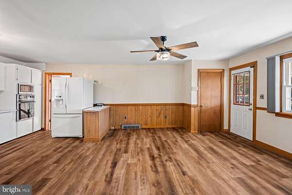 - Breakfast Area, Built-Ins, Ceiling Fan(s), Dining Area, Eat-In Kitchen, Family Room Off Kitchen, Wood Floors