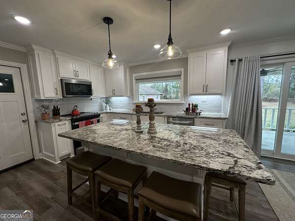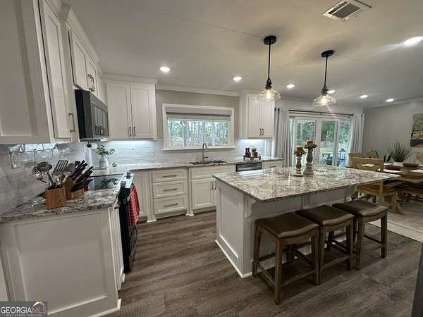 A RARE FIND!!!! This property will not last long. 2.75 acres with a small pond in the back, this property is a "diamond in the rough". Although there are only two bedrooms, the house is very spacious. It has been totally remodeled and looks better than a new construction home. Gorgeous granite counters tops with custom cabinets designed perfectly by the homeowner. The kitchen has all new appliances and a pantry that is every homeowner's dream! They have added a large window over the kitchen sink which is absolutely stunning. New sliding glass doors take you from the dining area to a 10' by 32" back porch. All new flooring.....no carpet. The primary bedroom has a wall of beautiful cabinets. Also en suite bathroom with tiled walk in shower. The second bathroom is very tastefully designed with open shelving serving as designer linen storage. New HVAC and metal roof. The home itself has a two car garage with tons of cabinetry providing ample storage. In addition, there is a detached 22' x 30' garage/workshop. Seller also has metal roofing for this structure which will remain with the property. This is a property that you have to "see it to appreciate it"! The sellers have poured their heart and soul into this home and it truly shows.