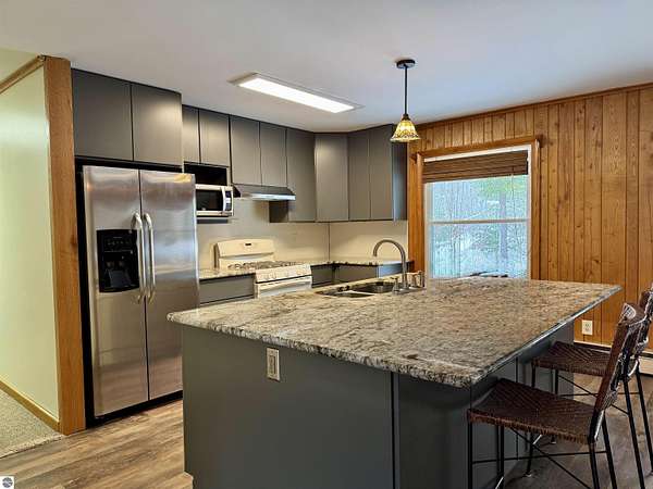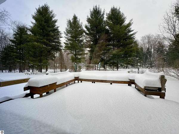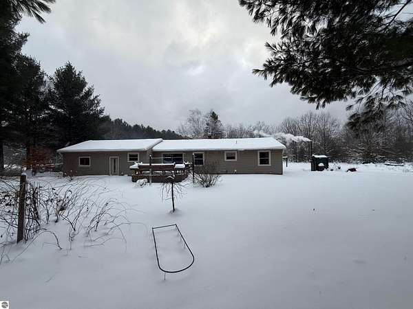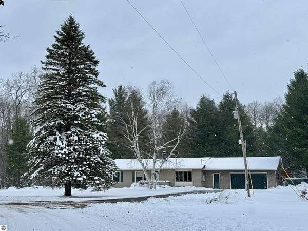 Peaceful countryside setting on 10 acres for this Ranch style home. Open floor plan w/ updated kitchen, new granite counters & cupboards, large island, massive pantry, 3 bedrms & 2 baths. New LVP flooring in the kitchen, dining, living, laundry rms. Heated bathroom floor in main bath. Main floor laundry. Supplemental wood boiler (see specifics in agent comments). Rinnai on demand hot water heating system. Generac Generator will power entire house. Pole buildings allowed. Located near Duck Lake & Interlochen, known for its arts center with various events, culture, lakes, rivers & golf.