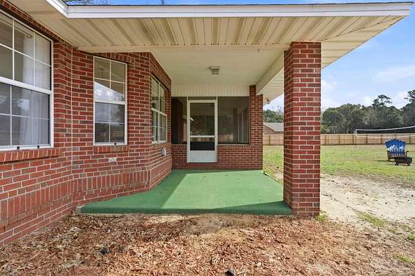 Situated on a generous 1.8-acre corner lot with no HOA, this beautiful brick home in Pace offers exceptional privacy, and plenty of room to spread out. Mature shade trees surround the property, and the BRAND NEW privacy fence make for a truly relaxing outdoor space. Inside, the home features a split floor plan with four bedrooms, three and a half bathrooms, and a spacious bonus room. The foyer boasts beautiful wood French doors that open into the spacious living room. The kitchen offers plenty of stained wood cabinets, stainless steel appliances, and a cozy breakfast nook with a large bay window that overlooks the backyard. Just off the kitchen, the formal dining room offers a beautiful view of the front yard, and provides plenty of space for hosting. The expansive living room showcases a tray ceiling, and a BRAND NEW, updated brick fireplace --perfect for both entertaining and relaxing. Adjacent to the living area, a screened-in patio provides the ideal spot for outdoor dining or unwinding while enjoying views of the tree-covered backyard. The split floor plan ensures privacy for the primary suite. The en suite bathroom features a double vanity, walk-in shower, soaking tub, and a private water closet. On the opposite side of the home, two spacious bedrooms with walk in closets, are connected by a Jack and Jill bathroom with private vanities and a brand-new shared tub/shower combination. Above the oversized two-car garage, you'll find a private fourth bedroom boasting a full bath and walk-in closet, along with a large bonus room, perfect for a playroom, home office, or additional storage. Outdoors, the fully fenced backyard offers easy access suitable for a car, boat, or RV. Tucked away just a short drive from Pace, this truly unique property delivers the perfect combination of privacy, and convenience. Roof- 2024 HVAC- 2025 Water Heater- 2025