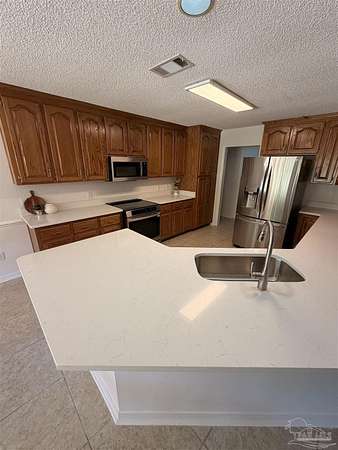 OPEN HOUSE SATURDAY APRIL 25 FROM 10 TO 12. KITCHEN COUNTERTOPS HAVE JUST BEEN REPLACED WITH QUARTZ. NEW GARAGE DOORS. Situated on a generous 1.8-acre corner lot with no HOA, this beautiful brick home in Pace offers exceptional privacy, and plenty of room to spread out. Mature shade trees surround the property, and the BRAND NEW privacy fence make for a truly relaxing outdoor space. Inside, the home features a split floor plan with four bedrooms, three and a half bathrooms, and a spacious bonus room. The foyer boasts beautiful wood French doors that open into the spacious living room. The kitchen offers plenty of stained wood cabinets, stainless steel appliances, and a cozy breakfast nook with a large bay window that overlooks the backyard. Just off the kitchen, the formal dining room offers a beautiful view of the front yard, and provides plenty of space for hosting. The expansive living room showcases a tray ceiling, and a BRAND NEW, updated brick fireplace -perfect for both entertaining and relaxing. Adjacent to the living area, a screened-in patio provides the ideal spot for outdoor dining or unwinding while enjoying views of the tree-covered backyard. The split floor plan ensures privacy for the primary suite. The en suite bathroom features a double vanity, walk-in shower, soaking tub, and a private water closet. On the opposite side of the home, two spacious bedrooms with walk in closets, are connected by a Jack and Jill bathroom with private vanities and a brand-new shared tub/shower combination. Above the oversized two-car garage, you'll find a private fourth bedroom boasting a full bath and walk-in closet, along with a large bonus room, perfect for a playroom, home office, or additional storage. Outdoors, the fully fenced backyard offers easy access suitable for a car, boat, or RV. Tucked away just a short drive from Pace, this truly unique property delivers the perfect combination of privacy, and convenience. Roof- 2024 HVAC- 2025 Water Heater- 2025