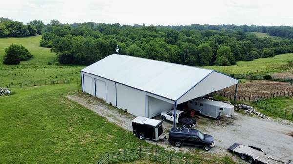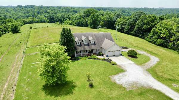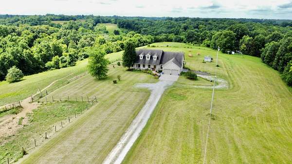 Looking for a Kentucky property with acreage, privacy, and serious hunting potential? This 45.9-acre farm in Owen County checks all the boxes. The custom-built 4-bed, 3.5-bath home features high-end finishes, a full walkout basement, and a second gourmet kitchen-ideal for country living with modern comfort. Two garages (upstairs and down) provide space for UTVs, tools, or hobby gear. The main barn is horse-ready with 3 stalls, a wash rack, a tack room with bathroom, and hay/equipment storage. A second barn adds a stall with run-out, livestock space, and even more storage. This property is in the heart of Owen County-one of Kentucky's top trophy buck counties. Known for high harvest numbers and Boone & Crockett entries, it's a proven whitetail hotspot. The mix of pasture, wooded cover, and natural funnels makes it perfect for bow or gun season. Located within easy driving distance of Lexington, Louisville, and Cincinnati, this private and peaceful property offers turnkey farm living, equestrian facilities, and top-tier deer hunting-all in one.