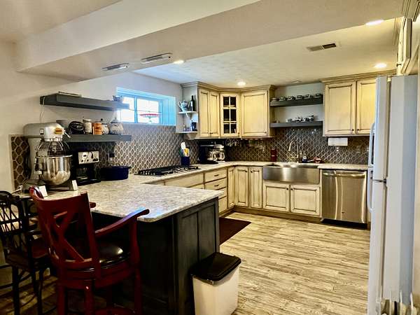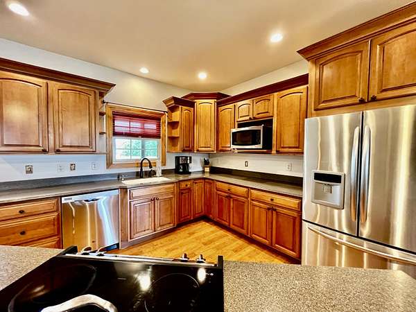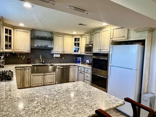 - Dishwasher, Double Oven, Electric Range, Gas Cooktop, Microwave, Refrigerator, Stainless Steel Appliance(s)