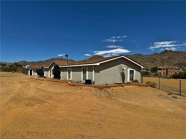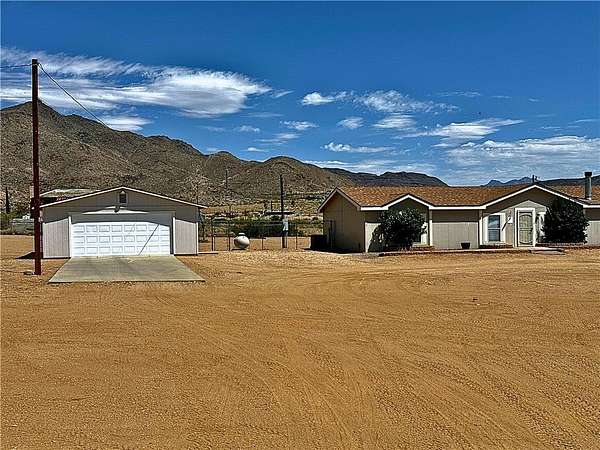 Spacious 5-bedroom, 3-bath home on 2.2 fully fenced acres in Golden Valley. Built in 2002, this 2,055 sq ft home features a split floor plan with open living and dining areas, vaulted ceilings, and a functional kitchen with a kitchen island.. The primary suite includes a double vanity, shower, and a garden tub. The house is located on a corner lot with drive-through gate and detached 2-car garage. Mountain views, rural water, propane, septic, and 110v electric. Located near Hwy 93 and Hwy 68 for easy access to Kingman, Laughlin, and Bullhead City. No HOA. A great opportunity for those looking for space, privacy, and convenience.