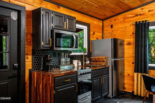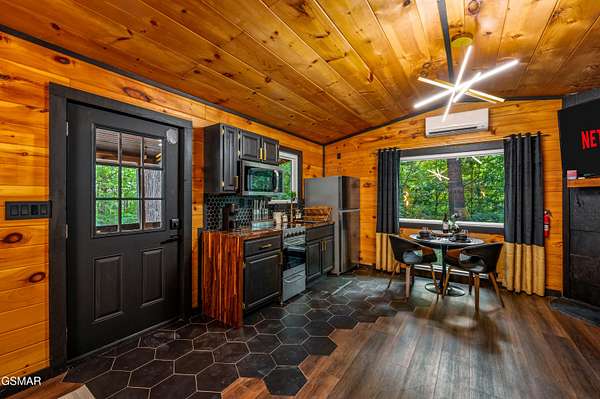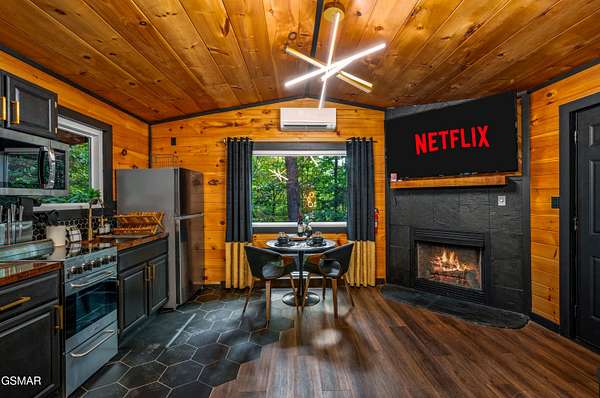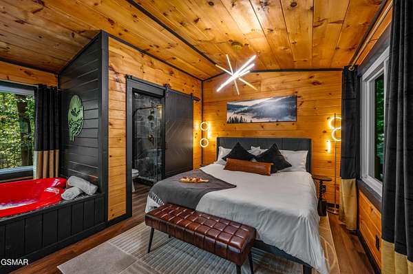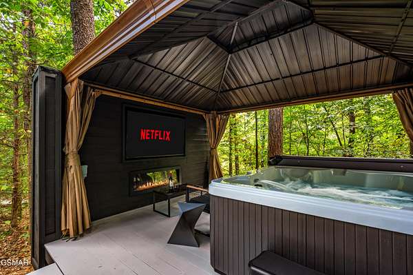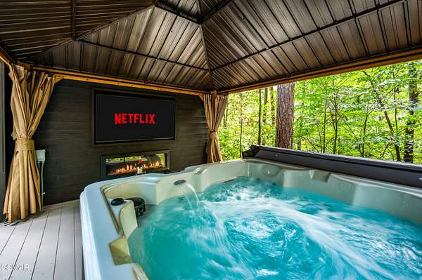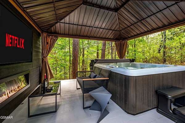 Cabin #2 of 5 in the exclusive Honey Mountain Resort. Gross rental of $99.8k in 2025 with 341 nights booked (on AirBnB alone, 93.6% occupancy!), and had already generated over $24k by April 1st of this year- it's already on track to meet or exceed last year's numbers. This property may be small, but blows properties 10x its size (and 2-3x) out of the water in net revenue. Fully optimized and tailored to have all the amenities you need to be a top 1% rental, minimal maintenance costs, ease of ownership/management, and provide a truly elevated guest experience. All properties located within the resort were extensively renovated down to the studs upon current owners purchasing them. Over $175,000 was put into EACH of the 5x properties including significant landscaping/hardscaping, completely new windows, plumbing/water heaters/fixtures, electrical wiring/panels/fixtures, metal roofing, siding, decking, railings, flooring, showers, etc. Reach out to the listing agent or have your agent inquiry for the full/detailed scope of work list. They're essentially new constructions! The Royal Honey is a one-of-a-kind romantic studio cabin nestled within the enchanting Honey Mountain Resort- designed exclusively to cater to a luxury couples experience, and strategically optimized to ensure seclusion, privacy, and an elevated guest experience. Inside, you'll find a lavish king-size bed, a cozy propane fireplace, a heart-shaped jetted tub, a thoughtfully equipped kitchen, and an intimate dining area. Just steps away, a private movie theater, firepit + swing, and a covered hot tub pavilion with a built-in electric fireplace/TV insert awaits. Every amenity is for your guests exclusive use- no shared spaces, just pure privacy/intimacy. The Sleeping Area features a plush king sized bed, a large 65'' smart TV, and modern light fixtures + outlets within easy reach of the bed. The Bathroom is spa-inspired and features a spacious floor-to-ceiling tile walk-in shower with dual shower heads (and a glass shower door, no nasty shower curtains here). Space has been maximized to comfortably fit all your essentials (shampoo, conditioner, body wash) and two cozy bathrobes. The Kitchen is stocked with the essentials you ever need, including cookware, grillware, knife set, a full baking set, and a Keurig. The private Movie Theatre is located just steps from the front deck and is designed for cinematic magic and acoustics specifically designed for a true theatre experience. Enjoy an 85'' smart TV, immersive sound system, electric fireplace, oversized chaise lounger, bar-height dining table, and a popcorn machine for the ultimate date-night/intimate couples experience. The Front Deck features a gas fire table, comfy seating, and a BBQ grill for cozy evenings outdoors. Follow the softly lit path to the Fire Pit Area, where a charming two-seater bench swing and crackling fire create the perfect setting for s'mores and stargazing. Continue down the pathway to your personal Hot Tub Pergola- a secluded oasis complete with a private hot tub, 65'' TV, and an electric fireplace. It's the perfect place to unwind, sip wine, and soak in the romance of Honey Mountain. Current property manager offering 10% performance based management guarantee for 12 months. If they don't hit their income projection, their fee stays at 10% for another 12 months! Full service/white glove management service (as well as carrying over existing bookings)- or use a different PM/take this gem on for self management. No obligation to stay with current manager.