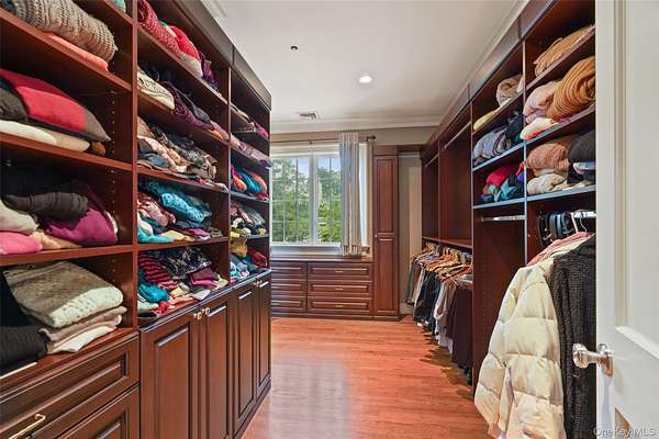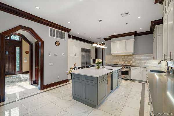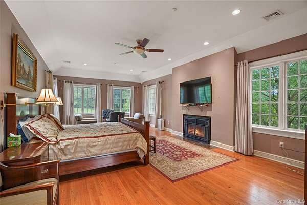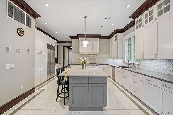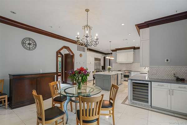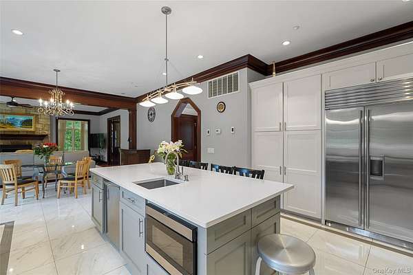 Experience refined living in this breathtaking 5,600+ sq ft contemporary estate, masterfully crafted in 2006 and remodeled in 2023, with stone, stucco, oak, and timeless design. Nestled on 2.5 serene acres in Purchase, NY, this gated retreat offers unmatched privacy, extraordinary amenities, and over 3,000 sq ft of outdoor entertainment space - ideal for families, entertainers, or executives seeking tranquility, just minutes from Manhattan. A dramatic vaulted-ceiling entry and atrium set the tone for sophistication. The main level boasts over 1,000 sq ft of open-concept dining and living space with 10-ft ceilings, dual gas fireplaces, and oversized French doors that create seamless flow between the separate family room and living room. The professional chef's kitchen is a masterpiece, featuring quartz countertops, custom cabinetry, heated ceramic flooring, Wolf dual-oven range, Sub-Zero refrigerator, dual dishwashers, and an oversized island with seating for four. A formal dining room, private ensuite guest/staff quarters, and multiple access points to stone patios elevate functionality and charm. Step outside to resort-style living: multiple patios, a cobblestone dining & entertainment patio, plus a 20x40 heated granite pool with integrated spa and child-safe fencing - all framed by lush, manicured grounds. The second level unveils a breathtaking 16x28 primary suite with 10-ft ceilings, hardwood floors, gas fireplace, dual custom walk-in closets, and a spa-inspired ensuite with whirlpool tub, steam shower, and dual vanities. Three additional ensuite bedrooms with walk-in closets, a dedicated laundry room, and a stunning 26x22 vaulted-ceiling multi-purpose bonus room with sweeping 270 degrees views that can be used as an office, gym, artist studio, extra bedroom, kid's activity or playroom, and more! The semi-finished basement expands lifestyle possibilities with a 1,600+ bottle temperature-controlled wine cellar, 4-person sauna, full bath with multi-jet shower, workshop space, and generous storage. Additional highlights include premium double-insulated windows, central vacuum system, whole-house fire sprinkler system, security system, three-zone HVAC system, a 3-car garage with heated floors, private access road, and circular drive. Located in the highly rated Harrison school district, this estate combines privacy with convenience - within 15 minutes from Westchester Airport, Metro North rail, major highways, golf & country clubs, and world-class dining, shopping & entertainment options. This turnkey property is the perfect balance of modern elegance, comfort, and convenience. Schedule your private showing today to experience the lifestyle this extraordinary home has to offer. Proof of funds / pre-approval required upon scheduling all showing.
