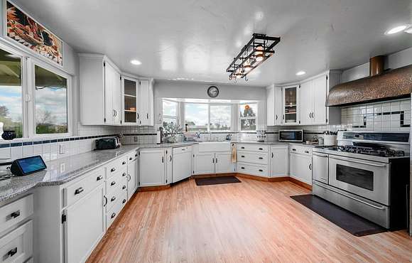 Stunning horse estate on just over 5 acres, featuring two homes and exceptional amenities. The custom main residence boasts 4 bedrooms, 2 bathrooms, and 2,674 square feet of thoughtfully designed living space, highlighted by an open layout with specially ordered wood doors and beams. The updated primary suite adds modern comfort. A spacious 900-square-foot garage/shop includes an additional room and bathroom.The second home offers 1,200 square feet with 2 bedrooms and 1.5 bathrooms, providing a perfect guest or rental opportunity. Both homes come with owned solar and no true-up costs.Equestrian facilities include a 4-stall mare motel, measuring 12x24 feet. The property is fully fenced and equipped with two wells and two 2,500-gallon storage tanks, ensuring ample water supply. A rare find for horse enthusiasts and those seeking country charm with modern conveniences!Located in the highly desirable Madera Ranchos and Golden Valley Unified School District. Country living but close to schools, shopping, and restaurants.Call your Realtor to schedule your private showing today!