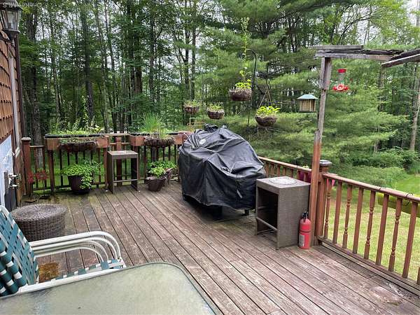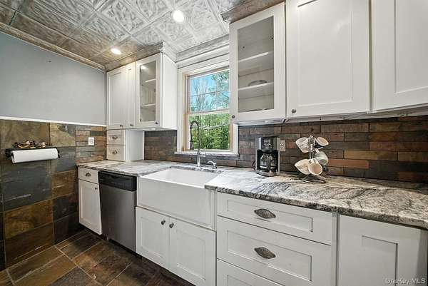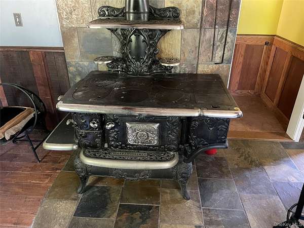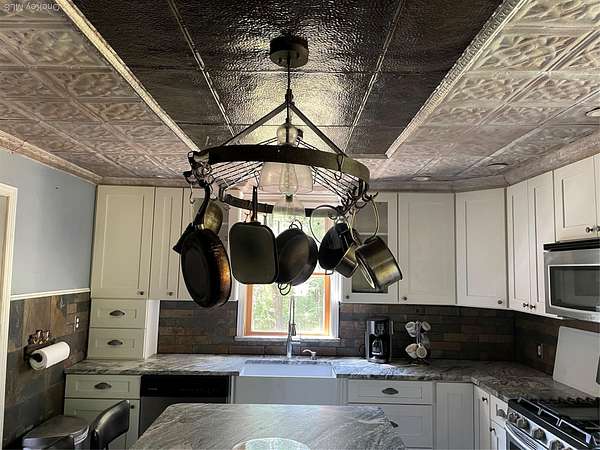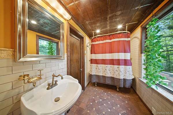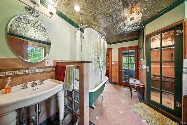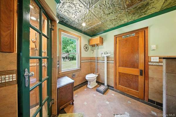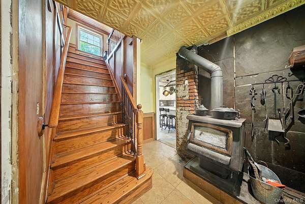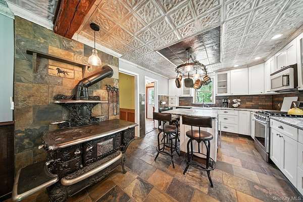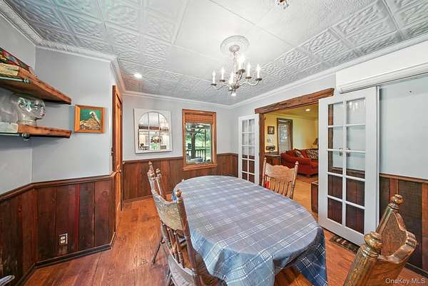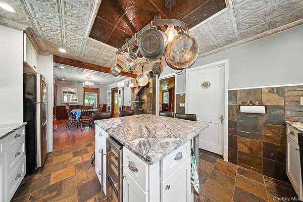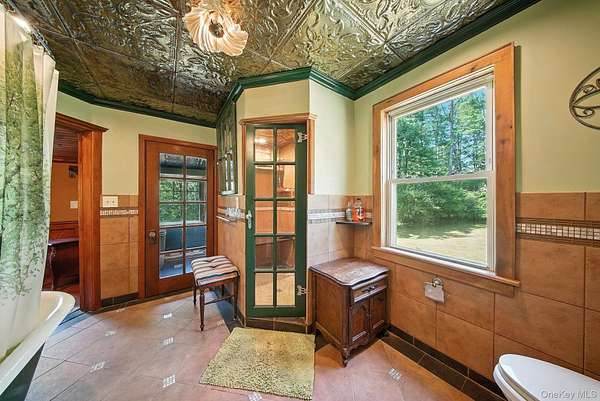 Upscale and stylish, you're going to be able to move right into this home loaded with charm and character with 3 bedrooms, two full baths, all set well back from the road on an idyllic country road in COCHECTON on 5 level wooded acres. Expect old world charm with tin ceilings and ornate blended metal + oak staircase, light fixture medallions and claw-footed tubs. There are three wood-burning stoves (living room, upstairs hall and kitchen) which provide a supplemental heat source but also that ambiance on winter days that make you remember grandma's house. One wood stove is a 6-burner with oven in the kitchen. The kitchen has been totally updated with an island, farm sink, leather-look granite countertops, stainless steel appliances and a wine cooler. There is a formal dining area and a pantry with walk out to a rear deck perfect for entertaining and enjoying the private rear yard. 2 full baths, one on each floor and they are HUGE! Claw-footed tubs with shower surround curtains, pedestal sinks and rich custom tile floors. There is a media room on the first floor or use it as a 4th bedroom. 3 nice size bedrooms upstairs but the primary is HUMONGOUS. Private laundry area with full size washer/dryer. Economical heat (2 splits) and electric baseboard. Most upgrades made within the last 5 years. All set on a very private lot with mature trees and easy commute to town (Callicoon) for shopping, schools, restaurants and more. High speed internet available. Don't miss the front porch with ceiling fans to laze away summer days reading a book. Close to Bethel Woods for summer outdoor concerts. Come see what all the BUZZ is about in the Catskills!