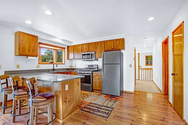 Discover your very own mountain retreat in this UPDATED and FULLY FURNISHED 3-bedroom, 2-bathroom home WITH A RECENTLY STAINED EXTERIOR (2025) & FRESHLY PAINTED INTERIOR (2026), perfectly situated on 2 EXPANSIVE ACRES near Fairplay, Colorado! Tucked away near the end of a peaceful dead-end road, this 1,844 sq ft residence offers the BEST OF MOUNTAIN LIVING with breathtaking MOUNTAIN VIEWS and a desirable SOUTH-FACING orientation, ensuring abundant natural light throughout the day. The recently updated kitchen and bathrooms elevate the interior, while 2 sunny decks provide ideal spots for relaxation and enjoying the panorama and the park like setting! And just wait until you see all of the available space in the ATTACHED 2-CAR GARAGE PLUS the OVERSIZED DETACHED 3+ CAR GARAGE/QUONSET HUT/WORKSHOP AND the ADDITIONAL STORAGE SHED! There is definitely no lack of storage or work space here! Stay comfortable year-round with both a PELLET STOVE and NATURAL GAS hot water baseboard heat. For ultimate peace of mind, backup solar and generator are in place, guaranteeing uninterrupted power if the electricity ever goes out. Just 25 miles from Main Street Breckenridge! You can easily drive there, or you can catch the FREE BUS in nearby Fairplay or Alma! This mountain property is close enough to the world renowned ski town to enjoy all of its benefits, yet far enough away from the hustle and bustle so that you can have your PEACE AND QUIET too. Whether you're living here full time, visiting on the weekends, or using it as a Short Term Rental, 375 Gold Trail is ready for you!