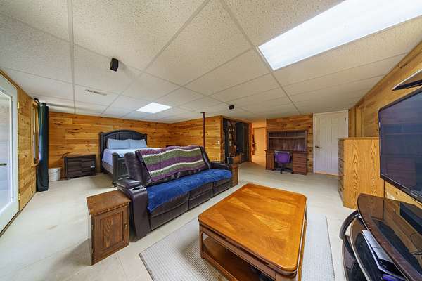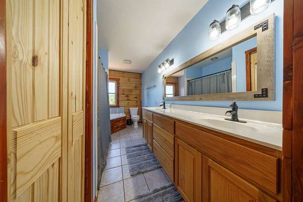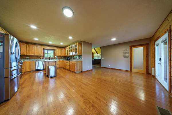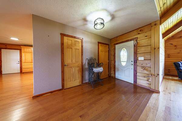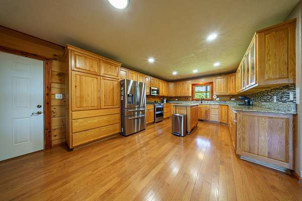 Built in 2009, this hand-crafted log home evokes timeless mountain lodge charm with the warmth and strength of natural wood throughout. Boasting over 4,560+- square feet of finished space--including a 2,400+- sq ft main level and a 2,160+- sq ft walk-out basement--the home offers 4 spacious bedrooms, 3.5 bathrooms, and an open-concept layout perfect for both quiet evenings and large family gatherings.
