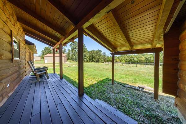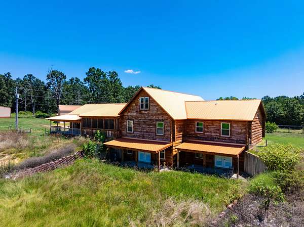 Welcome to one of the Ozark region's most extraordinary rural estates--a custom-built log home and fully operational ranch situated on 115 +/- acres of pristine, level pastureland, thoughtfully designed for both comfort and production. Whether you're dreaming of raising livestock, living off the land, or simply enjoying peaceful sunsets from your screened-in porch, this turnkey property offers everything you need--and more.