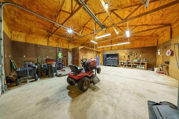 30x30 ft insulated shop with hot water on demand, 220V outlets, and LED light bars--perfect for mechanical work or hobby projects