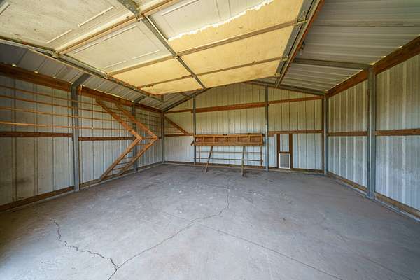 60x65 ft barn with frost-free hydrant, electricity, and hay/equipment storage