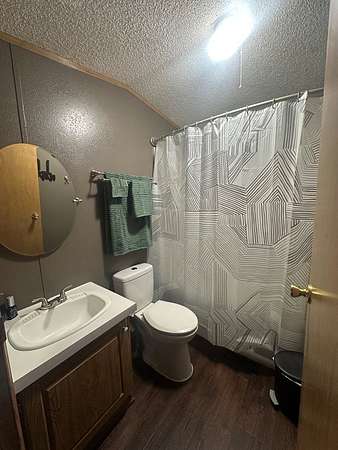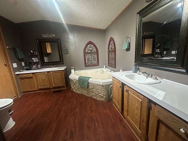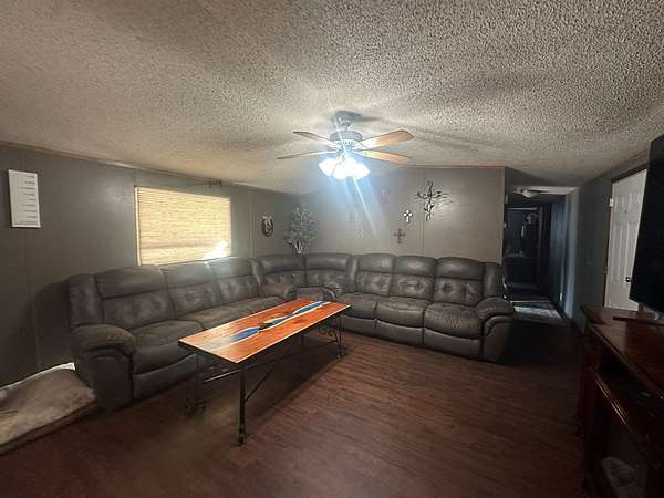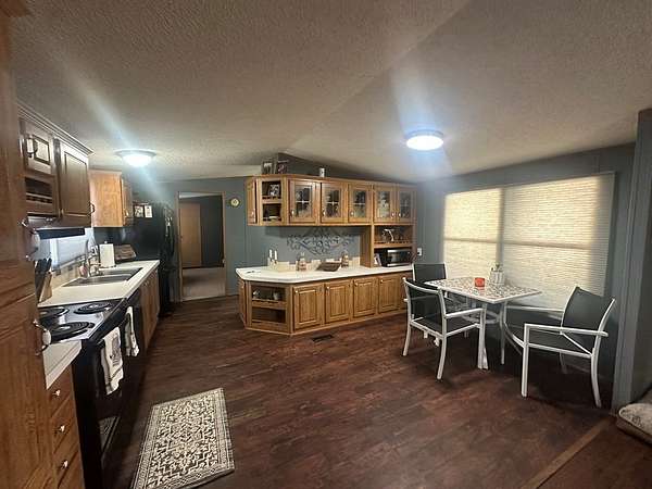 Est $1,501/moCountry setting close to town.. 5 Acres in Hudson School District. 3/2 updated mobile home, completely fenced ready for animals, with nice, stocked pond, and an amazing 30x30x18 insulated shop with A/C with loft for movie/game area and a 10 ft lean to off the outside. Comes furnished, with bedroom suite and all appliances. New metal roof 4 years ago.