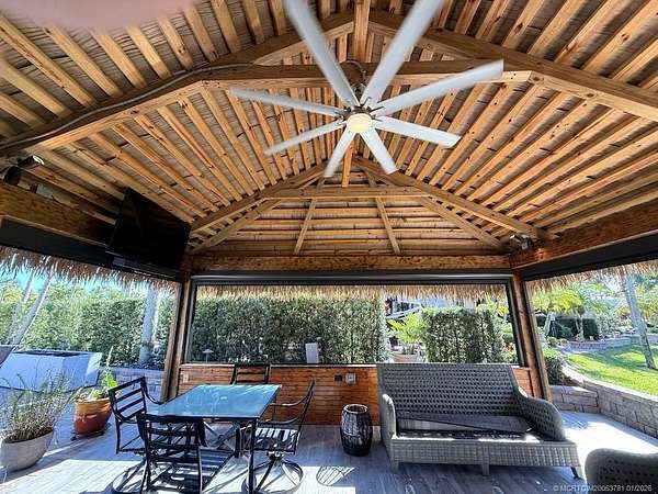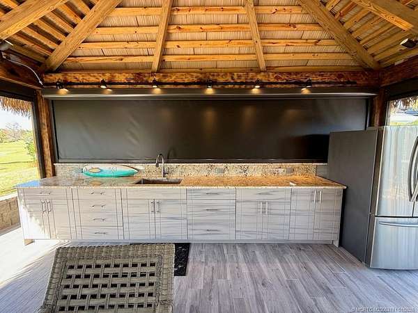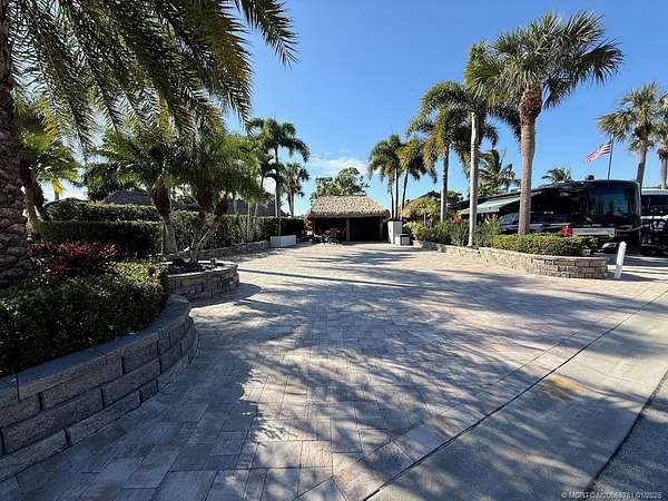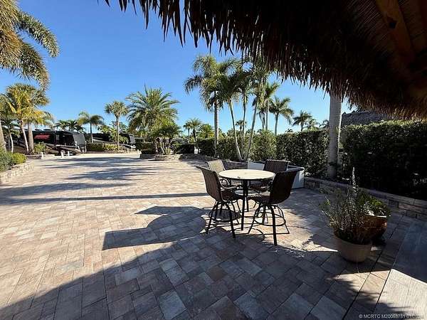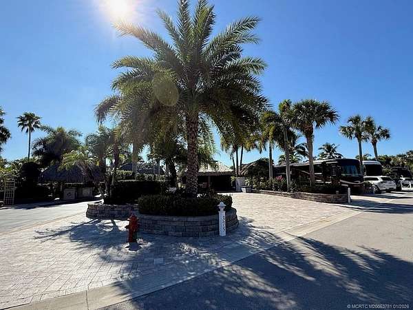 When Only the BEST Will Do! Experience luxury outdoor living with this impeccably designed and meticulously maintained RV lot. Completely transformed in 2021, this property offers an unmatched blend of elegance and functionality. At the heart of the lot is a stunning tiki structure, built with oversized decorative square poles and crowned with a durable 25-year artificial frond roof. The tiki is equipped with custom remote-controlled screens, including blackout privacy options, creating a space that feels like a coach house-without the walls. The outdoor kitchen is a chef's dream, featuring granite countertops, marine-grade cabinetry, and a full-size refrigerator, making it perfect for entertaining or relaxing. The lot itself backs onto the golf course, offering panoramic views and breathtaking sunsets, with its desirable north-facing orientation providing ideal light without the heat. With extra-wide frontage, a separate parking space, and tasteful furnishings included, it's perfect!