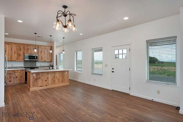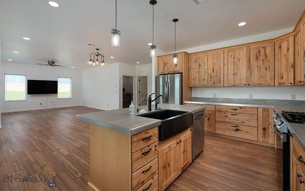 Discover the freedom of country living with this practically new, 2023-built home set on 40 acres of fenced & cross fenced land. Designed with a popular open-concept layout, this single-level 1,600 sq ft home with 2 bedrooms, 2 baths features durable Pergo flooring throughout. Spacious master bedroom has sizeable walk in closet and private bath with a walk in shower. Kitchen has inviting island and plenty of counter space with stainless steel appliances including a brand new gas stove. Laundry area includes a handy utility sink right off garage. Modern low-maintenance metal siding fits perfectly with modern conveniences like air conditioning, a new well, septic system, and a climate-controlled 2 car tandem garage. Plus, you'll love the bonus 38' x 28' detached shop-perfect for projects, storage, or extra workspace. Ready to expand? The property is already set up for future building, with a 400-amp panel and five 1,000-gallon propane tanks in place. An additional large equipment shed adds even more flexibility. Upgrades include a water filtration & security system. Room for horses, cattle, chickens or whatever your dream lifestyle holds. Take in sweeping views of the rolling countryside and distant mountains. Home is part of minor subdivision with minimal covenants and all other parcels are 20 acres. Located just off Hwy 287 N, you're perfectly situated near Three Forks, Bozeman, Butte, Helena and all sorts of outdoor recreation. Covenants and Warranty Deed appear to allow for property to be split into two 20 acre parcels. Buyer to due all their own due diligence. Convenient RV parking with power, water and clean out by garage. Don't miss this great opportunity, call your favorite realtor for a tour today.