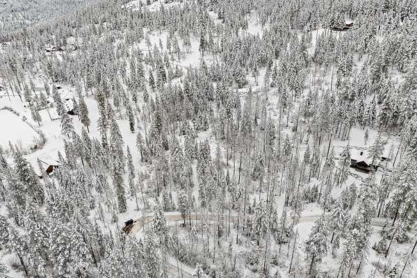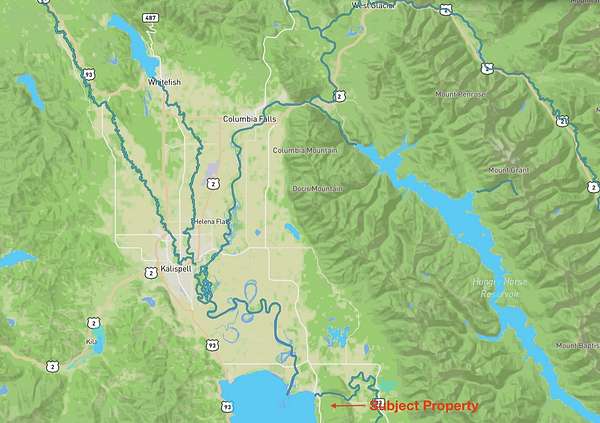 To reach the property from Kalispell, travel south on US-93, turning left (East) onto MT-82 E (Bigfork Bypass) before continuing onto MT-35 S toward Bigfork. Turn left onto Ranch Rd, which is the private road that leads to the property.