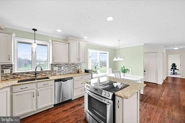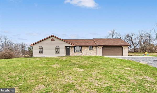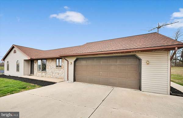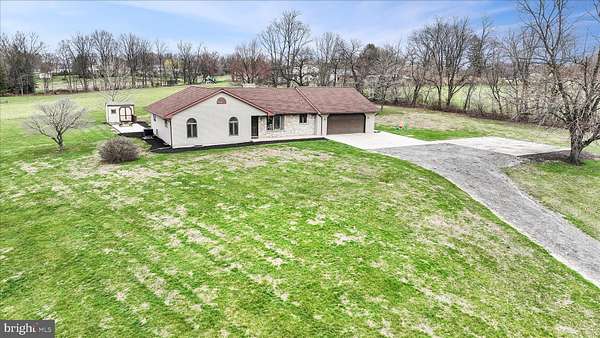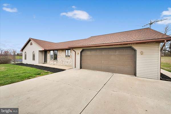 Escape to the peace and beauty of country living with this inviting ranch home set on 3.27 acres in an exceptional rural setting in North Lebanon Township. Offering the ease of one-story living, this property combines comfort, space, and exciting future potential. The home welcomes you with a spacious vaulted living room enhanced by skylights that fill the space with natural light, while the fireplace creates the perfect cozy focal point. A French Door leads to the rear patio, making it easy to relax and enjoy the surrounding countryside. The recently remodeled kitchen is sure to impress with its granite countertops, tiled backsplash, center island, slow-close drawers, and stainless steel appliances that remain, including the refrigerator, stove, dishwasher, and portable microwave. An adjacent eat-in area provides a comfortable space for casual meals and everyday gathering. The primary suite offers a private retreat with an en-suite bathroom featuring a skylight and soaking tub. Two additional bedrooms and a second full bath complete the main level, with the hall bath offering a wheelchair-accessible vanity and tub/shower combo. The oversized 2-car attached garage adds even more functionality with a laundry room and a separate half bath conveniently located just off the garage area. Downstairs, the basement family room provides great additional living space, along with flexible bonus space for hobbies, a home office, exercise area, or playroom. There is also a storage room with the potential to be finished into additional living space, plus another unfinished area that houses the mechanicals. Additional highlights include a roof replaced just 4 years ago and a recently upgraded HVAC system for peace of mind. The property is zoned Rural Residential, and the front portion of the lot may offer the potential for subdivision into a separate building parcel, adding valuable future opportunity. If you've been searching for a home with acreage, one-floor living, modern updates, and room to grow, this special property is one you won't want to miss.