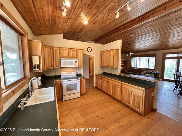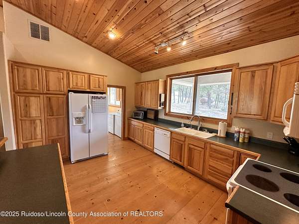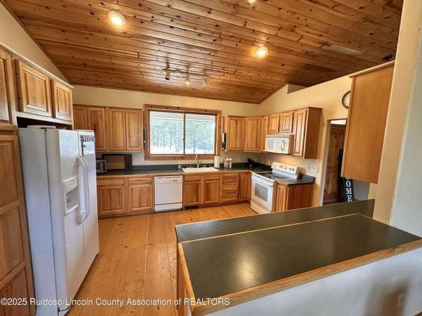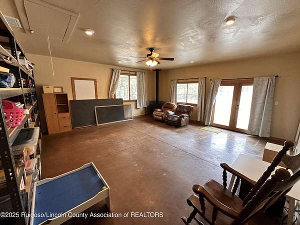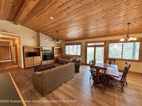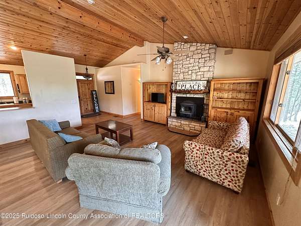 Est $3,359/moGREAT SIERRA BLANCA VIEWS! This one level 3BD/2.5BA stucco home is situated on approximately 2.5 acres and fenced. Home offers wood accent ceiling, wood floors, utility room with sink, metal roof and water softener. Living area has a wood burning fireplace and there also is a spacious family room with a free standing wood stove. Storage building included. Solar panels for backup and monthly savings on electric bills. Abundant wildlife to enjoy. Minutes from Spencer Theater, Ski Apache, golf courses and the mountain resort of Ruidoso, NM. Well. Septic System. A Must See!