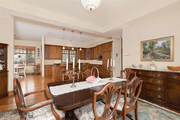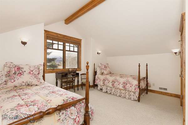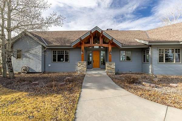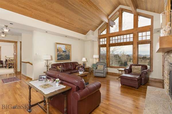 Perfectly positioned on a lush 1.78-acre parcel in one of the most coveted settings in the Gallatin Valley, this exceptional Springhill area property offers a rare blend of privacy, mature landscaping, unobstructed mountain views, and refined custom craftsmanship. Ideally located just minutes from Downtown Bozeman and Bozeman Yellowstone International Airport, with effortless access to National Forest trailheads, the home provides the perfect balance of convenience and outdoor lifestyle. Inside, a stunning display of light and scale unfolds. The expansive open-concept living area is defined by soaring vaulted ceilings, timber accents, and a dramatic floor-to-ceiling rock fireplace that serves as a striking focal point. Walls of windows flood the home with natural light while perfectly framing the surrounding mountain vistas. Designed with both everyday living and grand-scale entertaining in mind, this custom residence showcases high-end finishes and thoughtful detail throughout. Offering six generously sized bedrooms and four and a half bathrooms across three levels, the home provides exceptional flexibility. The walk-out lower level is ideal for multi-generational living or guest accommodations, complete with a full kitchen, dedicated theater room, and private living space. Step outside to the covered deck and take in the serenity of the landscape-an ideal setting to relax, entertain, and enjoy sweeping mountain views year-round.
