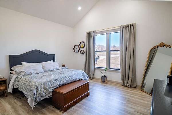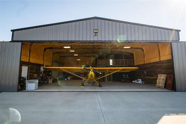 A standout feature of the property is the insulated 45’ x 50’ hangar, designed for both immediate use and future expansion. The hangar includes a 40’ x 12’ hangar door plus two additional roll-up doors suitable for aircraft, boat, or RV storage, RV hookups, and a hangar pad prepped for an addition if desired. Inside the hangar is a framed two-story guest apartment, already studded and planned for a kitchenette, living area, bedroom, and bathroom. A private hangar balcony extends from the upstairs living space, and all finish-out materials are already on site and included—allowing the next owner to complete the space with ease.