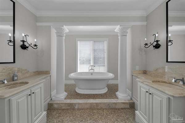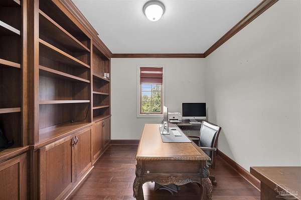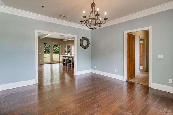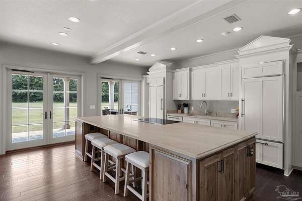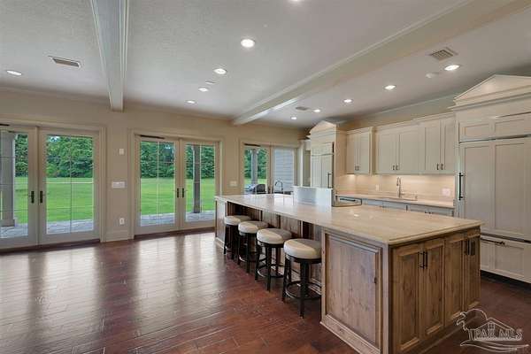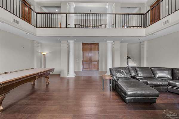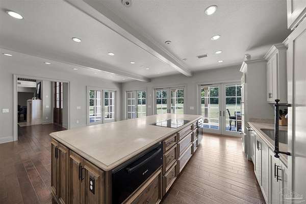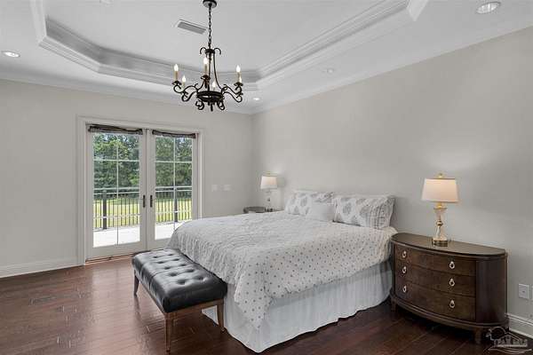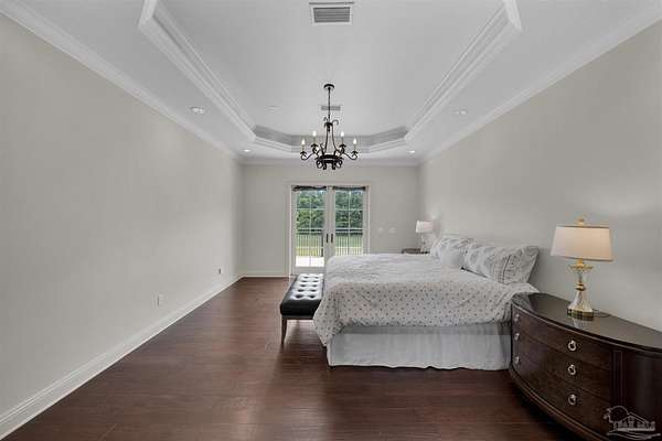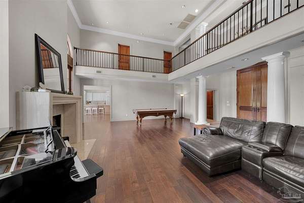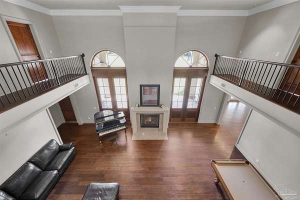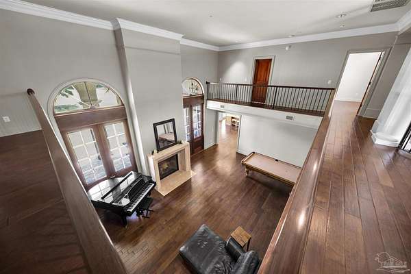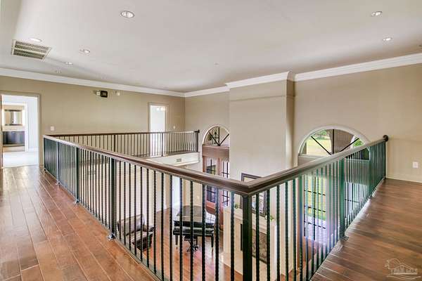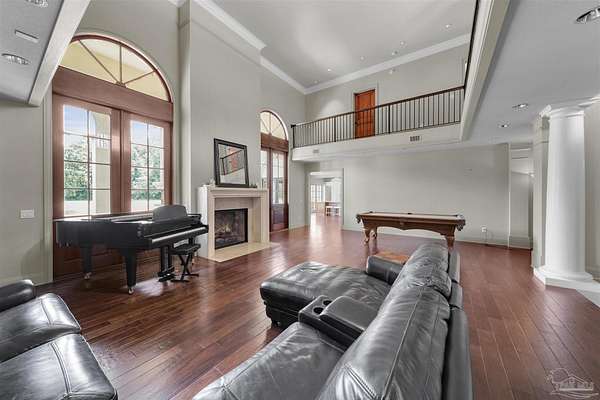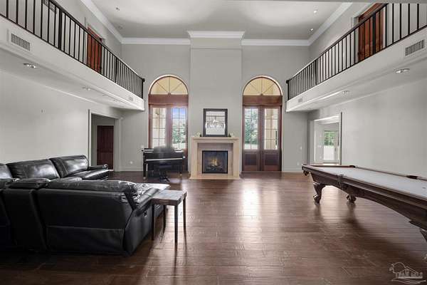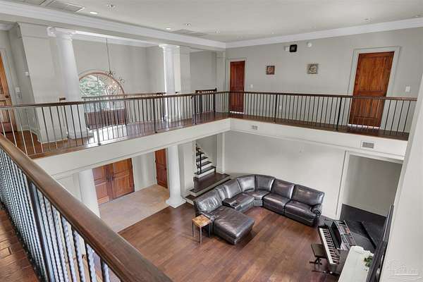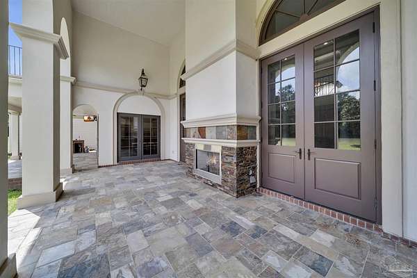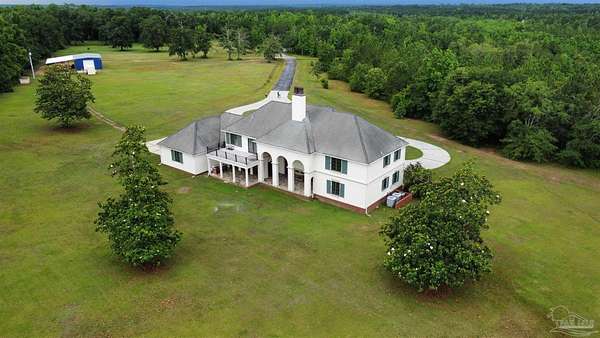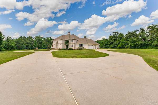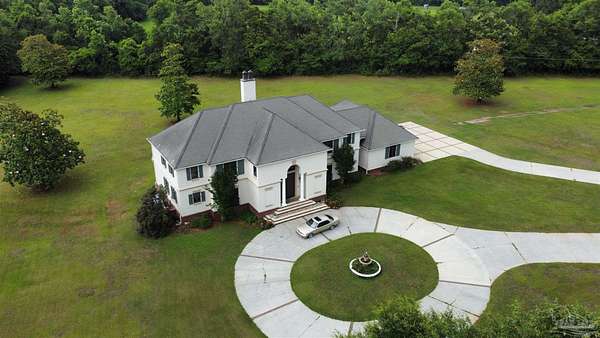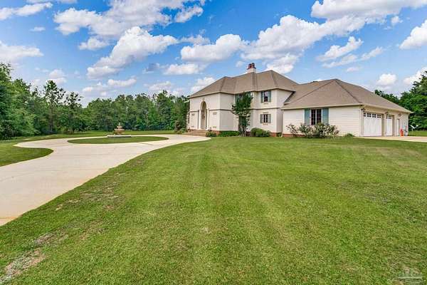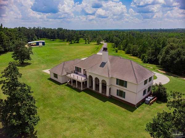 Gorgeous CUSTOM BUILT Tuscan Style home perfectly situated on 23.04 ac of privacy! This stunning home sits back 1/2 mile off the Hwy, in a VERY PRIVATE setting with nothing but nature & wildlife surrounding you! The gated and paved 1/2 mile driveway leads you to the circular driveway showcasing a magnificent water fountain! As you approach the home you will notice wrought iron finishes, columns & the GORGEOUS custom MAHOGANY double entry door. Enter this stunning home to a two-story ceiling in the great room, crown molding throughout, 3/4" SOLID HICKORY HARDWOOD flooring, stained interior wood doors & Kolbe custom windows & French doors! The great room features a gas fireplace flanked by tall French doors with elliptical windows, columns at the foyer entry & a staircase & ELEVATOR to the 2nd floor. The 4 person elevator boasts MAHAGONY walls, tile flooring & a telephone. The huge kitchen offers some of the finest appointments such as 2 SUB ZERO refrigerators, BOSCH oven, Thermador cooktop, 2 dishwashers, warming drawer, Marble countertops, Hickory hardwood flooring, 4 sets of French doors & exposed beams. The BUTLER'S kitchen & pantry are equally beautiful with Granite tops, cabinets with glass doors, elegant chandelier, tile flooring, soft close drawers & roll-out shelves. The THEATER/MEDIA ROOM includes a brand new high end 100 inch tv and was constructed to be a SAFE ROOM for emergency storm protection. On the 1st floor you have 2 bedrooms with each having their own private bath with custom finishes & walk-in closets. The 2nd story catwalk extends to 3 sides of the home, with a Juliette balcony overlooking the foyer. The cat walk may be accessed by the elevator or stairs & directs you to the 2 additional upstairs bedrooms w/ensuite bathrooms, custom finishes & walk-in closets. The master bedroom wing/retreat provides you total privacy! The master bedroom showcases a trey ceiling w/rope lighting, french doors opening to large private balcony, cont'd