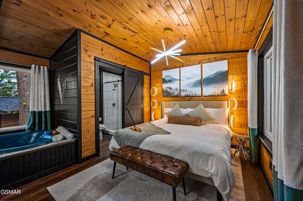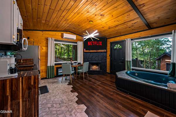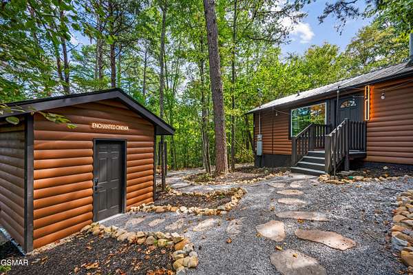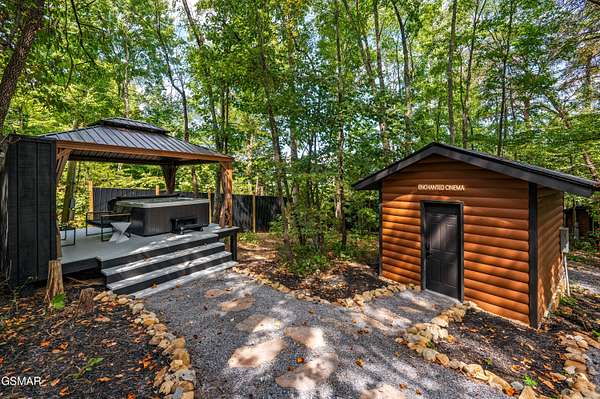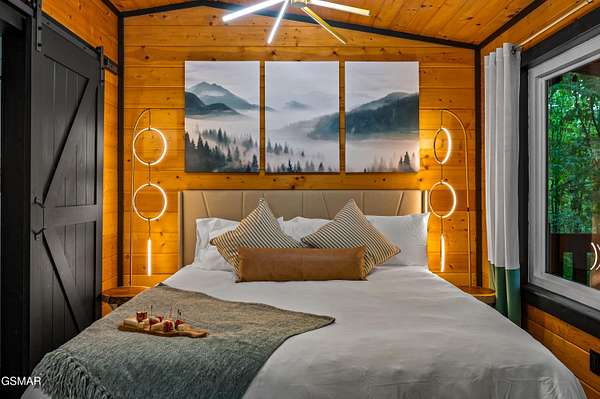 Cabin #3 of 5 in the exclusive Honey Mountain Resort. Gross rental of $88.9k in 2025 with 317 nights booked (on AirBnB alone, 87% occupancy!), and had already generated over $23k by April 1st of this year- it's already on track to meet or exceed last year's numbers. This property may be small, but it blows properties 10x its size out of the water (and 2-3x the price) in net revenue. Fully optimized and tailored to have all the amenities you need to be a top 1% rental, minimal maintenance costs, ease of ownership/management, and provide a truly elevated guest experience. All properties located within the resort were extensively renovated down to the studs upon current owners purchasing them. Over $175,000 was put into EACH of the 5x properties including significant landscaping/hardscaping, completely new windows, plumbing/water heaters/fixtures, electrical wiring/panels/fixtures, metal roofing, siding, decking, railings, flooring, showers, etc. Reach out to the listing agent or have your agent inquiry for the full/detailed scope of work list. They're essentially new constructions! The Royal Honey is a one-of-a-kind romantic studio cabin nestled within the enchanting Honey Mountain Resort- designed exclusively to cater to a luxury couples experience, and strategically optimized to ensure seclusion, privacy, and an elevated guest experience. Inside, you'll find a lavish king-size bed, a cozy propane fireplace, a heart-shaped jetted tub, a thoughtfully equipped kitchen, and an intimate dining area. Just steps away, a private movie theater, firepit + swing, and a covered hot tub pavilion with a built-in electric fireplace/TV insert awaits. Every amenity is for your guests exclusive use- no shared spaces, just pure privacy/intimacy. The Sleeping Area features a plush king sized bed, a large 65'' smart TV, and modern light fixtures + outlets within easy reach of the bed. The Bathroom is spa-inspired and features a spacious floor-to-ceiling tile walk-in shower with dual shower heads (and a glass shower door, no nasty shower curtains here). Space has been maximized to comfortably fit all your essentials (shampoo, conditioner, body wash) and two cozy bathrobes. The Kitchen is stocked with the essentials you ever need, including cookware, grillware, knife set, a full baking set, and a Keurig. The private Movie Theatre is located just steps from the front deck and is designed for cinematic magic and acoustics specifically designed for a true theatre experience. Enjoy an 85'' smart TV, immersive sound system, electric fireplace, oversized chaise lounger, bar-height dining table, and a popcorn machine for the ultimate date-night/intimate couples experience. The Front Deck features a gas fire table, comfy seating, and a BBQ grill for cozy evenings outdoors. Follow the softly lit path to the Fire Pit Area, where a charming two-seater bench swing and crackling fire create the perfect setting for s'mores and stargazing. Continue down the pathway to your personal Hot Tub Pergola- a secluded oasis complete with a private hot tub, 65'' TV, and an electric fireplace. It's the perfect place to unwind, sip wine, and soak in the romance of Honey Mountain. Current property manager offering 10% performance based management guarantee for 12 months. If they don't hit their income projection, their fee stays at 10% for another 12 months! Full service/white glove management service (as well as carrying over existing bookings)- or use a different PM/take this gem on for self management. No obligation to stay with current manager.