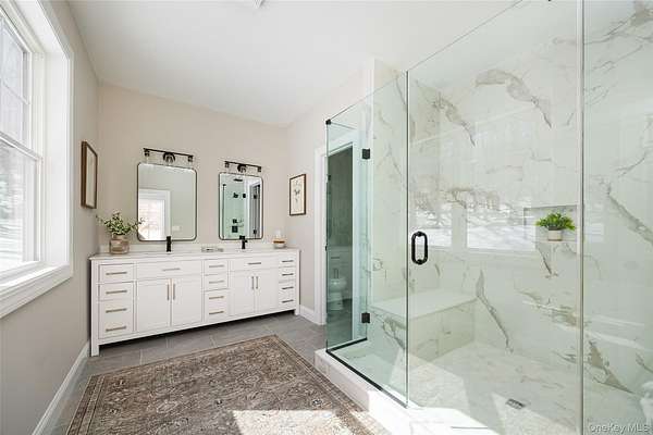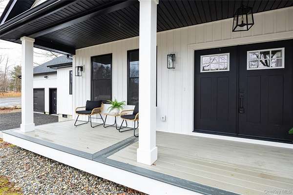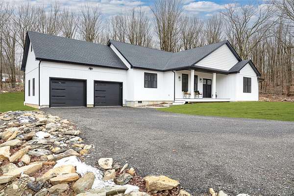 NEW CONSTRUCTION WITHOUT THE WAIT! Welcome to this beautifully crafted brand-new Farmhouse Ranch in the desirable hamlet of Stormville. Set on over 1.5 acres of privacy, following the long meandering driveway, this single-level home offers over 2900 SQFT of comfortable, modern living space. Step inside to discover an expansive open floor plan where the kitchen, dining area, and living room flow effortlessly together-creating the ideal environment for both daily living and entertaining. The chef's kitchen showcases elegant quartz countertops and backsplash, high-quality custom cabinets, and SS appliances. A custom wet bar with wine fridge, adds an extra touch of convenience when hosting guests. The home offers an expansive primary suite with his and hers oversized walk-in closets, en suite bath with custom tile surround glass enclosed shower and double vanity. Three generously sized bedrooms and a beautifully appointed full main bathroom features stylish, modern finishes designed for both comfort and sophistication. Oversized windows throughout the home invite in plenty of natural light, creating a bright and welcoming atmosphere. High efficient forced air heat pump for heating and cooling. Outside, enjoy a large stamped concrete patio, level yard and a low-maintenance Trex rocking chair front porch. The board-and-batten siding adds classic curb appeal, while the property backs up to state land offering exceptional privacy with no future development behind. This home is conveniently located just minutes from I-84, shopping, and local schools-providing the perfect blend of all things the Hudson Valley has to offer. Make this your HOME today!