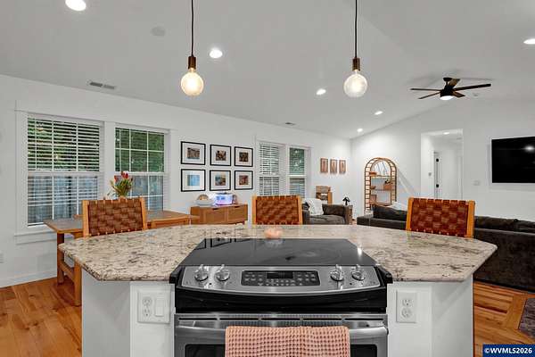 Est $3,525/moThis stunning home is situated back off the road in a fabulous neighborhood. Beautiful finishes include natural hardwood floors, hickory easy-close kitchen cabinets, gorgeous granite counters in the kitchen and bath, tiled shower, vaulted ceiling, new HVAC system, open floor concept with vaulted ceiling and lots of natural light. Many custom updates, including an enormous pantry and gorgeous primary suite. Every bedroom has a walk-in closet. This rare gem also has a pond, don't miss out!