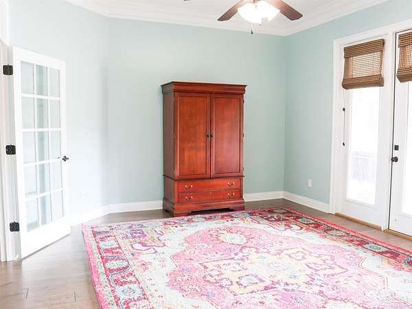 Welcome Home- a Southern retreat nestled on just over 4 private acres in the prestigious, gated community of Nobles Plantation. This 4-bedroom, 3.5-bath home offers the perfect blend of sophistication, comfort, and leisure outdoor living. Step inside to find hardwood floors and high ceilings throughout the main living areas, a formal dining room, and a spacious study perfect for working from home. The split floor plan offers privacy and flexibility, with an inviting open-concept kitchen with double ovens for the baker's dream and huge breakfast nook with custom cabinetry, that overlook the expansive backyard. The primary suite is a true owner's retreat featuring a flex space that can serve as a nursery, fitness room, or private office with views of and direct access to the backyard and pool. The spa-inspired master bath includes separate vanities, a jacuzzi tub, walk-in shower, and his-and-hers closets. Two guest bedrooms share a convenient hallway bath, while a fourth bedroom functions perfectly as a mother-in-law suite or for extended stays, complete with its own living area and private bath. That living area is off of the main living room through French doors and could also be used as a play room, sitting area, or fitness room that has direct access to the back porch and pool. The large laundry room with folding table and half bath are conveniently located at the three car garage entrance. Enjoy year-round outdoor living on the large covered back porch with warm wood ceilings, overlooking a gunite pool with tanning shelf and a sprawling backyard ready for your personal touch-ideal for entertaining or peaceful country living. Among other estate homes in Nobles Plantation, this property offers the perfect blend of craftsmanship, comfort, and privacy, all in an unbeatable Pace location just minutes from top rated schools, shopping, and dining.