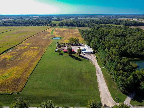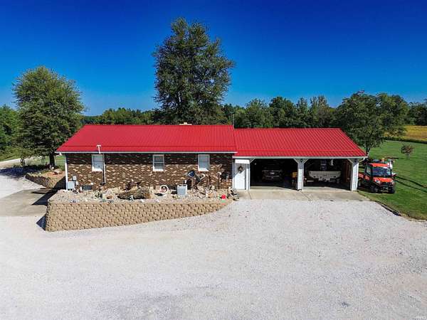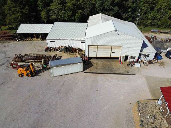 Discover the perfect blend of peaceful country living and productive potential in this hilltop haven. Nestled on 5 scenic acres, this inviting 2-bedroom brick home offers panoramic views, crisp country air, and a lifestyle that balances comfort with possibility. Step inside to an open-concept layout featuring an updated kitchen that flows into the living room or onto a spacious 16x32 Trex deck, ideal for entertaining or unwinding after a long day. The home also includes a full bath with newer walk-in shower, cozy den, full walk-out basement with 8ft ceilings, laundry room, half bath, and a spacious 30x30 attached garage. Just steps away, an established welding business awaits in a massive 8,758 sq ft pole building. Designed for serious work, it boasts a 28'x16' overhead door for semis or large vehicles, soaring 18'-20' ceiling in the main bay, dedicated workspace, parts room, utility garage area, machine storage are, office, breakroom, and robust utilities including 3-phase power and propane heat. Whether you're seeking a tranquil setting, a turnkey business, or both - this property offers it all!