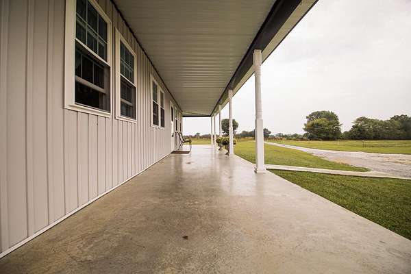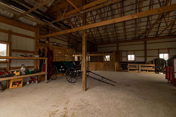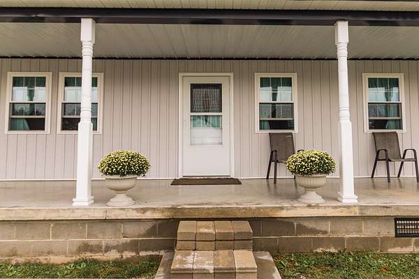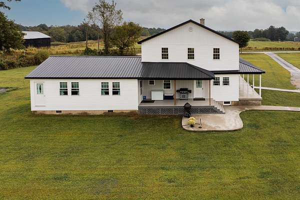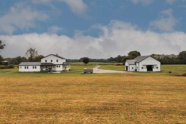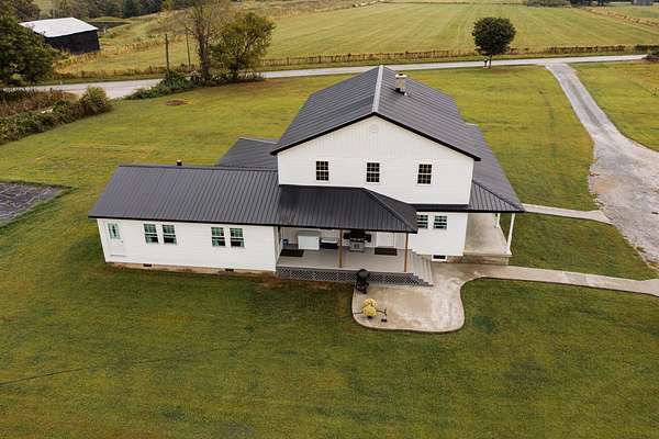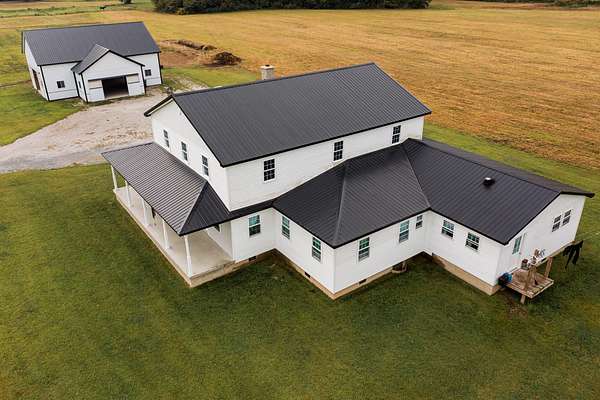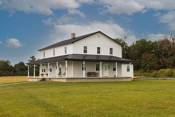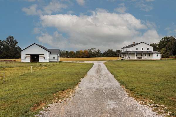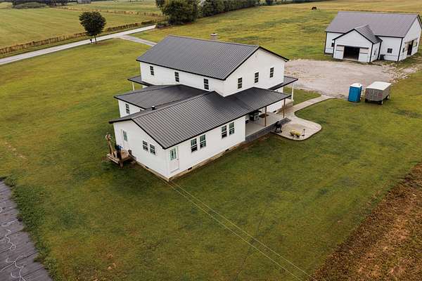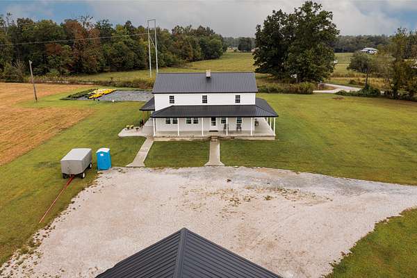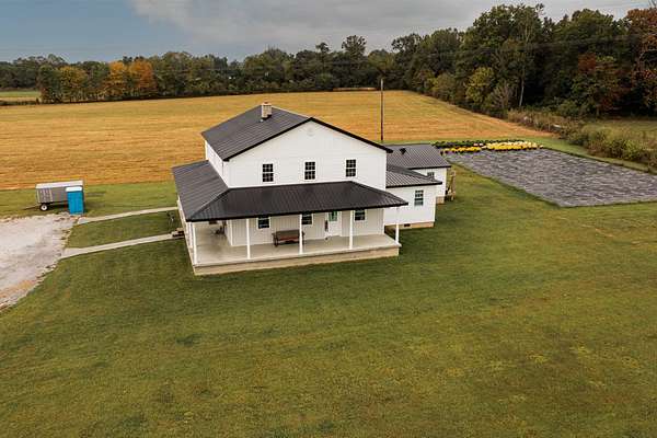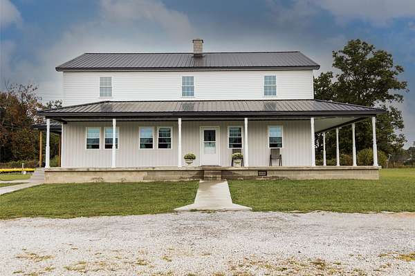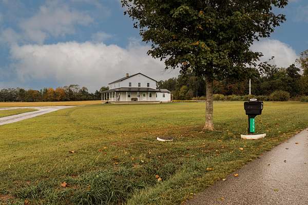 Welcome to this beautiful farm retreat offering 14.13 acres of flat, partially fenced land in a picturesque rural setting just minutes from town and I-64. The attractive two-story, one-owner home features a spacious 2,960 sq. ft. main floor with gorgeous hardwood floors, a partial poured concrete basement, and a foam-insulated crawl space. Upstairs, 1,920 sq. ft. of drywall is already in place-ready to be finished into additional living space, making this home ideal for multi-family living or expanding as your needs grow. Enjoy covered wraparound porches perfect for relaxing and taking in the views. The property includes a 36' x 48' barn with three stalls (and room for more), plus a 12' x 24' storage area-providing excellent space for livestock, equipment, or hobbies. With ample room for animals, gardens, or crops, this farm is an exceptional opportunity for those seeking a self-sustaining lifestyle, off-the-grid potential, or simply the tranquility of country living with modern convenience nearby. Buyers to verify all square footage measurements.