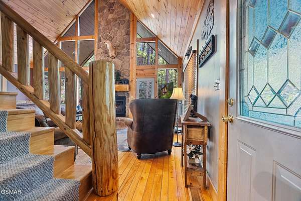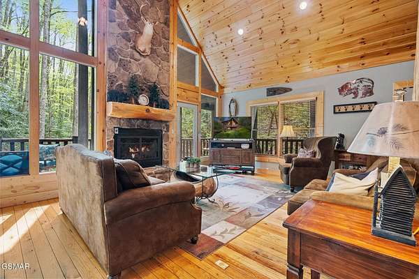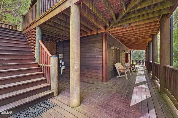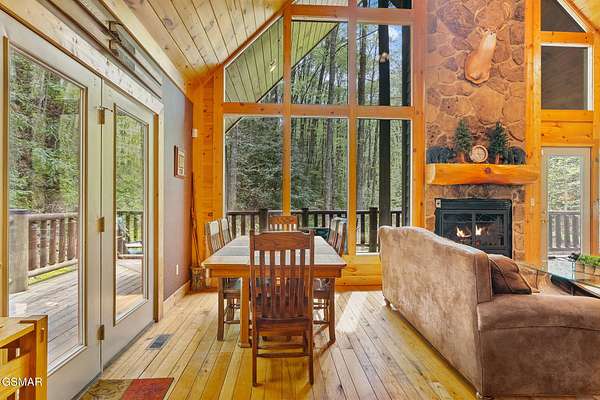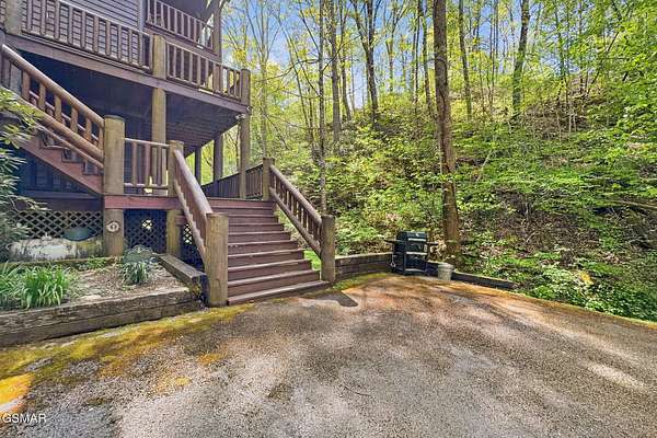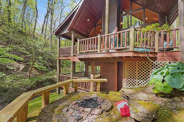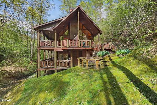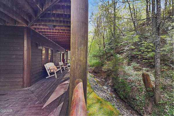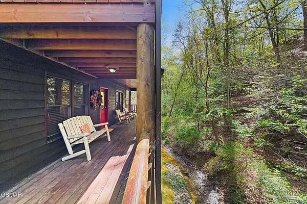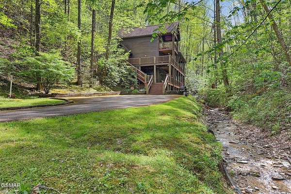 RARE, PRIVATE, CREEKSIDE Retreat on 5+ Acres in the sought after area of Wears Valley, just outside the National Park! Welcome to a truly magical Smoky Mountain escape--where privacy, nature, and comfort come together in one unforgettable property. Nestled on just over 5 acres and only steps from the Great Smoky Mountains National Park, this 3 bedroom, 3 bathroom cabin is a rare find that outdoor enthusiasts and investors alike dream about. Designed for both relaxation and privacy, each level features its own bedroom and full bathroom, making it ideal for hosting families and groups. The entire third level is dedicated to the spacious primary suite, creating a peaceful sanctuary complete with a private balcony overlooking the year-round flowing creek--the perfect place to sip coffee, unwind, and listen to the soothing sounds of nature. The setting feels straight out of a storybook. A beautiful year-round creek runs through the entire property, and much of the yard is covered in lush moss, giving the grounds a whimsical, fairy-garden-like charm that's both serene and unforgettable. Best of all, there are no steep roads to access the cabin--including the driveway--making year-round access simple and stress-free. As a Certified Wildlife Habitat(R), this property has a designated, eco-friendly landscape recognized by the National Wildlife Federation for providing the essential elements wildlife need to thrive. This cabin is completely PRIVATE with no neighbors, offering the peaceful mountain lifestyle buyers crave while still being close to adventure. It's a proven performer as well--a Guest Favorite on AirBnB with an impressive 4.96-star rating and 283 glowing reviews, currently accommodating up to 9 guests. The fireplace features handcrafted Mennonite-built doors detailing a custom bear design inspired by a photo taken onsite, providing an heirloom-quality focal point that celebrates the cabins natural surroundings! Whether you're searching for a peaceful mountain retreat, a high-performing short-term rental, or a one-of-a-kind nature getaway, this Wears Valley cabin offers a level of privacy, beauty, and charm that's incredibly hard to find!