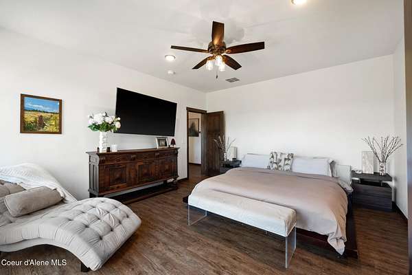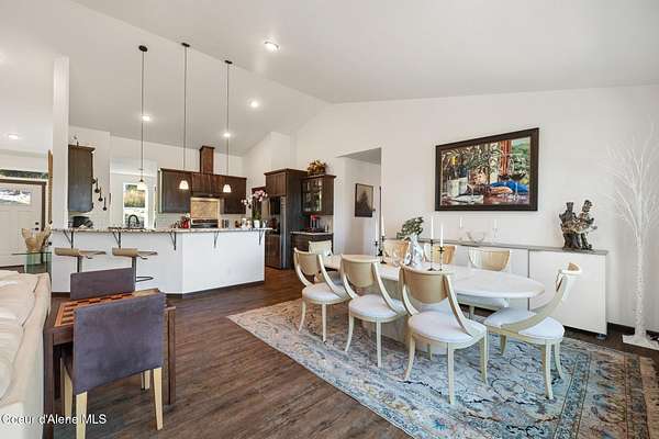 Welcome to this beautiful home in Hayden, Idaho, nestled on 3.63 acres of rolling land with breathtaking mountain views. Built in 2019, this 4-bedroom, 3.5-bath residence offers over 4,200 square feet of living space designed with both comfort and elegance in mind. From the moment you step inside, soaring vaulted ceilings and an open floor plan create a bright, inviting atmosphere that feels both spacious and warm. French doors draw you out to the large deck, where you can sip your morning coffee while taking in the peaceful surroundings. The finished basement expands the home's possibilities, offering an additional bathroom and laundry area along with flexible space for guests, a media room, or whatever your lifestyle calls for. Every detail has been thoughtfully designed, from the huge pantry and custom cabinetry that make storage a breeze, to the fenced garden and backyard that are ready for planting and play. A paved driveway and a three-car heated garage provide convenience year-round, while the outdoor patio and deck create the perfect backdrop for gatherings with family and friends. Whether you're entertaining under the wide Idaho skies or enjoying a quiet evening indoors, this home offers the best of both worlds, luxury living with a touch of country serenity.