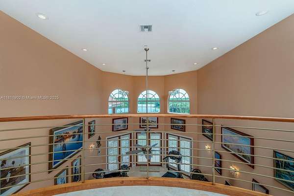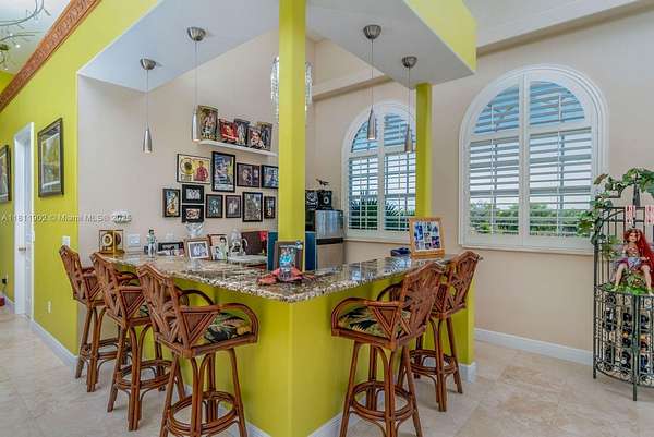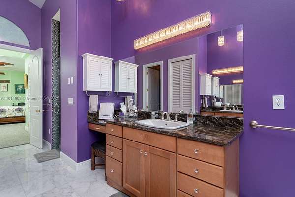 Waterfront multiple-family Estate, private, custom main house of 7181 sq ft of ultimate luxury w/4 en-suites, pool bath & half bath & 3/3 guest house with 6 car garage, acreage, private boat ramp & dock. Built to withstand CAT 5 hurricanes, CBS, metal roof, X flood zone (no flood insurance required), high elevation, no flooding. Two Masters offer his/her vanities, custom closets, rain showers & Jacuzzis. Flooring is travertine/marble/onyx & wood. Gourmet kitchen with Brookwood cabinetry & "jeweled" granite countertops, double sinks, double ovens, bread warmer, island with gas cooktop, breakfast nook, wine room, huge walk-in pantry, & vast great room with a custom bar. Plantation shutters, wraparound waterfront veranda & private balconies up, elevator shaft, whole house security system.