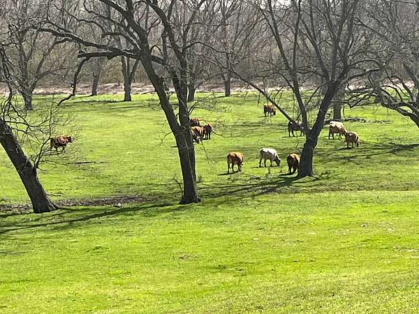 Grape Ranch is an absolute all around premier property. This beautiful contiguous property sits 6 miles south of the city of Okemah. With 2 miles of north Canadian river frontage, pond, lake, hunting, fishing, farming, cattle, you name it, this property can do it ALL and then some. It sits at the end of a dead end road with as much privacy as you could ever hope for. A 10 acre oxbow lake hosts trophy largemouth bass, crappie, channel catfish and numerous other species. There is a beautiful 3 acre pond right when you pull across the cattle guard that is also stocked with large mouth bass and crappie. It just explodes with cool season clovers, ryegrass and fescue in the spring, then transitions wonderfully to summer hardy improved bermuda grass. The ranch currently runs 250 cow calf pairs. On normal rainfall years the ranch produces enough hay to sustain at least 250 cows with minimal effort. With a weed/fertilizer program that could be significantly improved. There is a beautiful 7000 sq ft barndominium. 1/3 is a home that has 4 bedrooms and 5 baths. The spacious rooms will provide tons of space to host plenty of guests. 1/3 is a cold storage area which is the current "gym" for grandkids! 1/3 can be retail space or turned into an awesome hangout/bar area. There is a 50x40 composite deck overlooking the 40 acre pecan grove with the north Canadian river flowing behind it. Great place to entertain or just sit back and enjoy the best outdoor relaxing experience Oklahoma has to offer. If hunting is your thing, white tailed deer, turkey, and hogs are plentiful and many trophies have been harvested off the property. The 3 acre pond and 10 acre lake host a ridiculous amount of waterfowl. Coyote and bobcats are seen regularly and there even has been some black bear sightings in the surrounding area! Can be purchased with all the cattle and equipment for a true turn key property that is already generating income. Call today for more information!