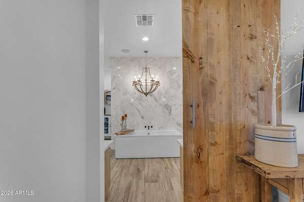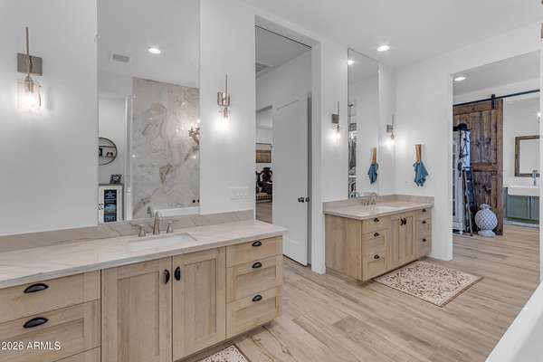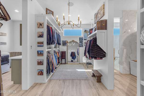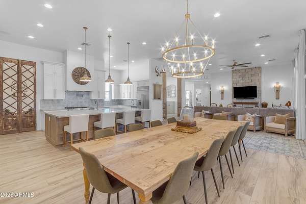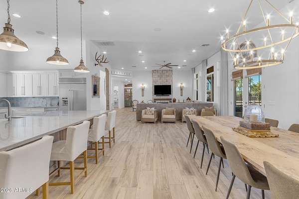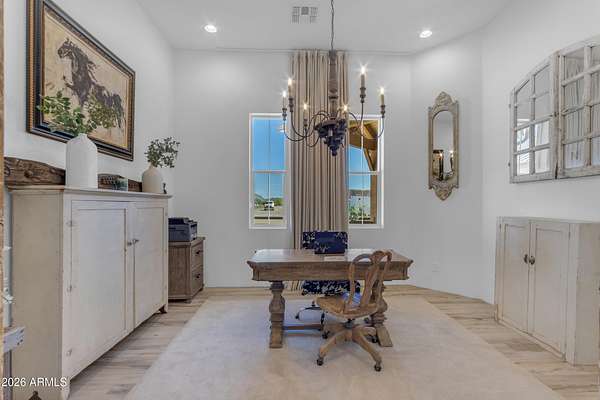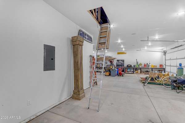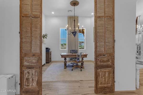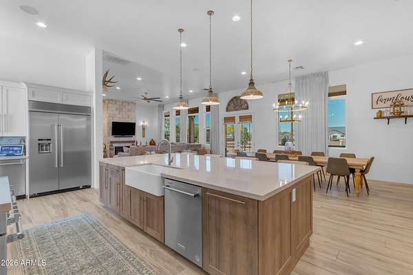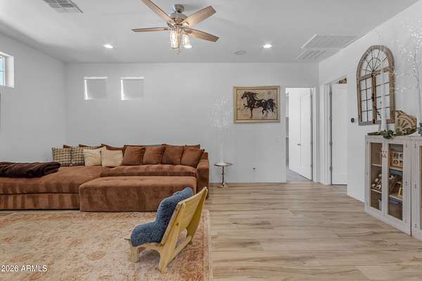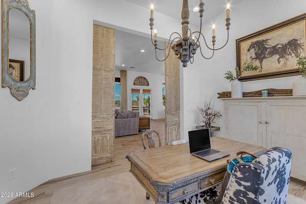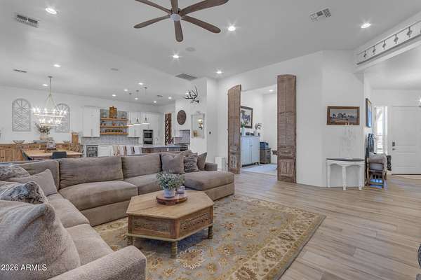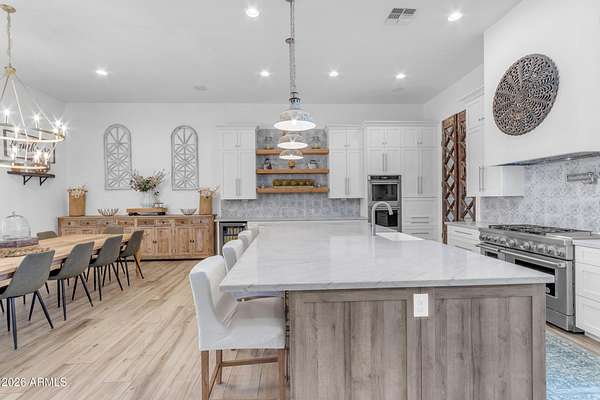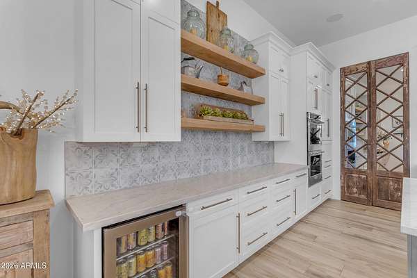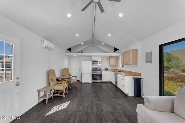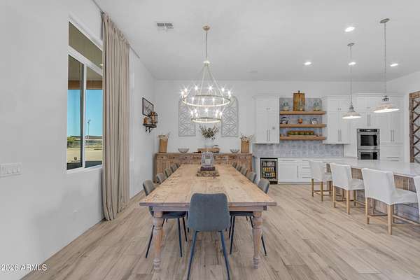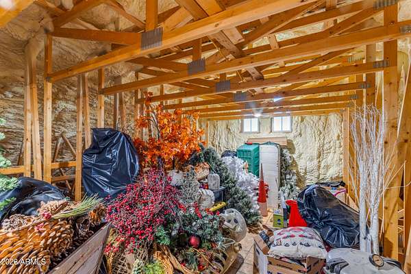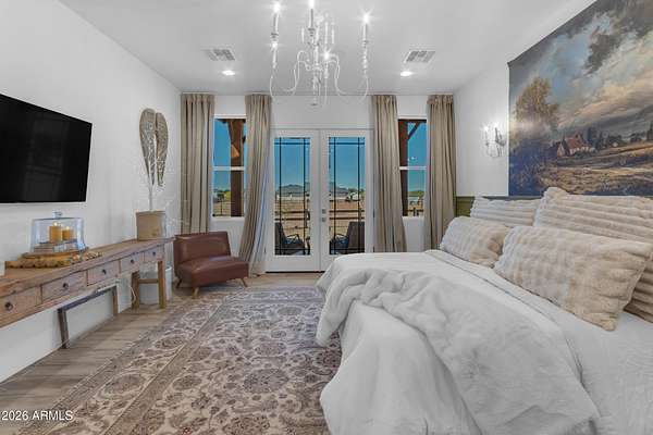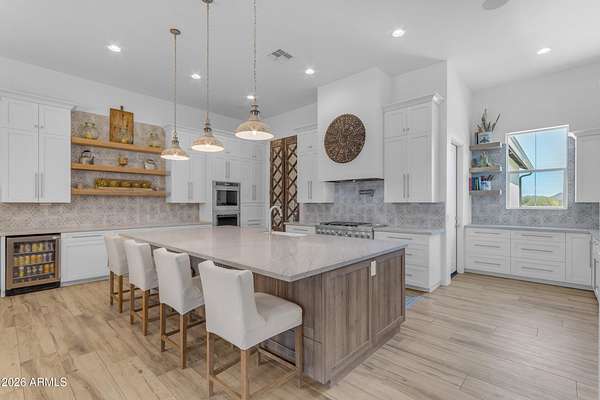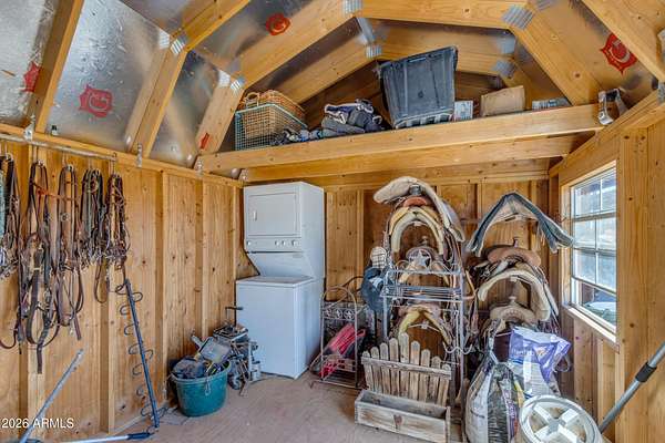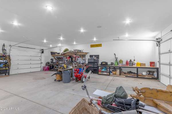 Some properties are just listings... and some you walk onto and immediately know they feel like home. This is one of those. Built in 2022 on 2.99 fully fenced acres, this ~4,000 sq ft custom horse property was designed for the way people actually live--open, functional, and filled with thoughtful, one-of-a-kind details. It perfectly blends a designer dream home interior with a fully dialed-in equestrian setup. Inside, the home showcases a true split floor plan with 3 bedrooms plus a bonus/flex room and 2.5 bathrooms. The primary suite is a true retreat--spacious and inviting--with his & hers walk-in closets and a hidden safe/storage room tucked inside. There's even direct access to the laundry room, which is outfitted for dogs with a secure outdoor dog run--because every detail here was intentionally designed. The living spaces feel open and bright, with large windows bringing in natural light and framing views of the property. Warm wood accents, beautiful flooring, and statement lighting add character and elevate the overall design while still keeping the home comfortable and livable. At the heart of it all is a chef's kitchen built for both everyday living and entertaining--featuring a large island, high-end KitchenAid appliances, custom cabinetry, an appliance garage, a butler's pantry, and a separate prep kitchen that adds both function and style. The garage setup is next level--2,000 sq ft with six-car capacity, tandem pull-through access, its own half bath, and an 8' x 20' structurally engineered attic for additional storage. There's also RV parking with a 30-amp hookup, easy trailer access, and plenty of room to move. Additionally, a 575 sq ft tiny home offers incredible flexibility--perfect for guests, multigenerational living, ranch help, or rental income. There's even potential to purchase an additional acre on a separate bill of sale. For horse enthusiasts, this property is fully set up and ready to go. The grounds feature a 165' x 280' oilfield pipe arena with sand footing, return alley with chute and boxes, a 6-stall breeeway mare motel with 16x16 stalls, multiple turnouts, a tack room, and easy trailer access throughout. It's clean, functional, and thoughtfully laid out for real use. Beyond the horse amenities, the property continues to deliver with 15 fruit trees, a large custom chicken coop, and a 200 sq ft outbuilding complete with power and a mini split--ideal for a workshop, hobby space, or additional storage. Being directly across from Arizona State Trust Land means endless riding right out your gate. Location is just as impressive--centrally positioned with easy access to everything: approximately 45 minutes to Wickenburg, 30 minutes to WestWorld, 20 minutes to Dynamite Arena, and just 10 minutes from I-17. This is a rare opportunity to own a newer custom build with usable acreage, a legitimate horse setup, and flexible living options--all in one. Whether you're looking to live it, work it, or both... this property checks boxes you didn't even know you had. Upgrades to home home C Synthetic stucco C Full spray foam walls and ceilings C Some interior walls sound proof C Pot filler in kitchen C Pot filler at dog station in laundry room C Hard wired for camera exterior C Bluetooth wireless eco bee T-Stats C Bluetooth garage door motors C 2x6 wall construction with full shear entire home C RV plug in C Half hot outlets at the ceiling in the living room, game room, bonus room, office/ every room in the house C Exterior Christmas outlets that are off a switch C 8'x20' structurally built attic storage room in the garage C Hot water recirculating pump C Soft water system through out the home C 90% of the exterior trees irrigated C Gutter in the front of home