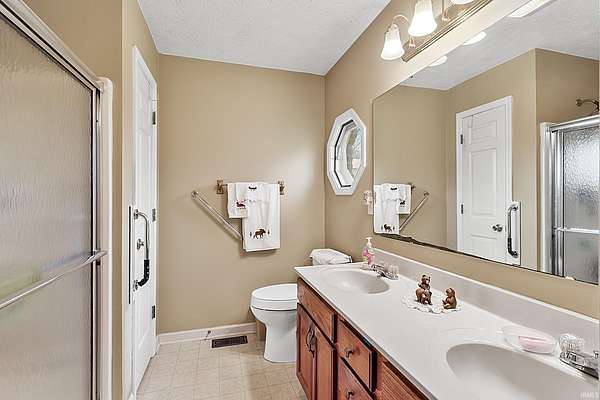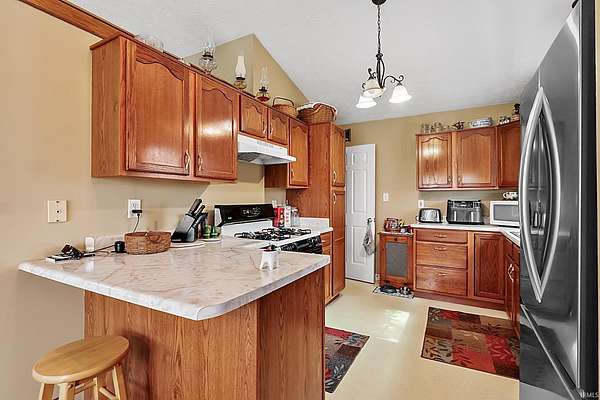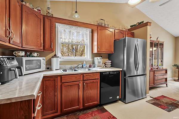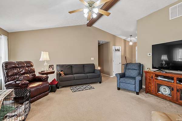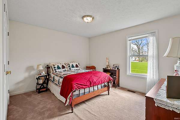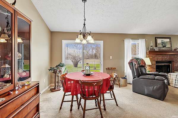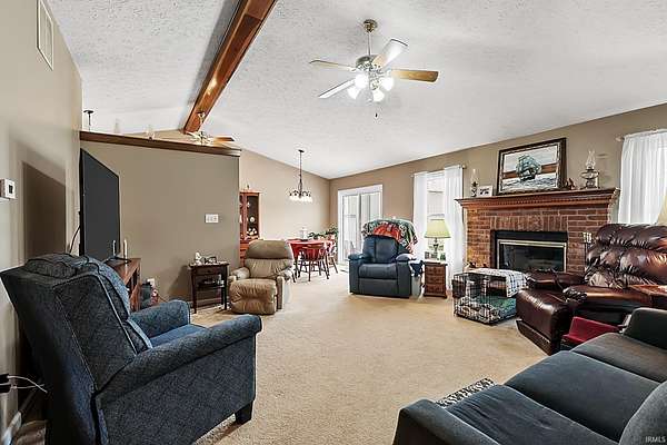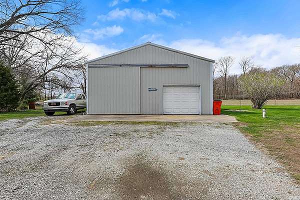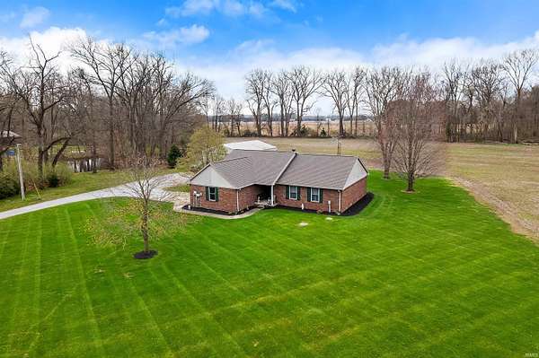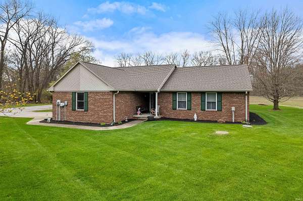 All-brick ranch situated on 3 acres offering the perfect blend of space, comfort, and functionality. This well-maintained 3-bedroom, 2-bath home features 1,507 square feet of living space along with an attached 2-car garage and a versatile 30x40 pole barn with concrete floors—ideal for storage, hobbies, a workshop, or additional vehicle space. The expansive setting provides room to roam, enjoy outdoor activities, or simply take in the peaceful surroundings. Inside, cathedral ceilings create an open and inviting atmosphere in the main living area, complemented by a cozy fireplace that serves as the focal point of the living room. The layout offers a practical flow between living, dining, and kitchen spaces, making it well-suited for both everyday living and entertaining. The primary suite includes a walk-in closet and a private bath with dual vanity, providing both comfort and convenience. Two additional bedrooms and a second full bath offer flexibility for family, guests, or a home office. Step outside to the back patio overlooking open fields where wildlife frequently roams, creating a quiet, scenic setting that’s hard to find. Recent updates add value and peace of mind, including a newer roof, furnace, and central air system. Whether you're looking for a full-time residence or a property with room for your hobbies and equipment, this home offers the best of country living while still being within a reasonable distance to town and amenities.