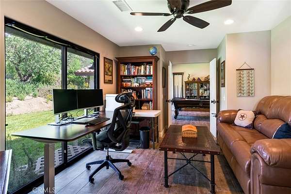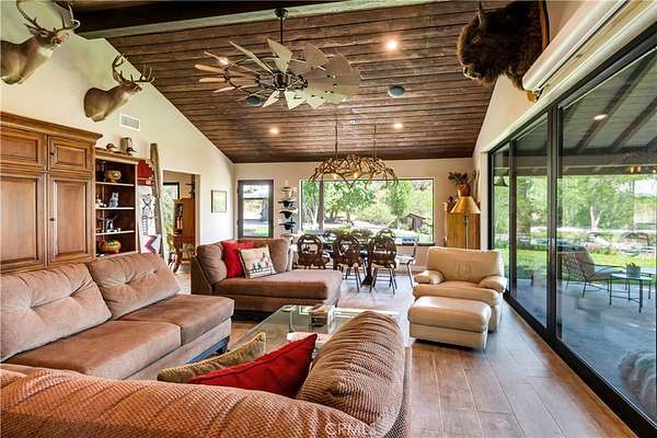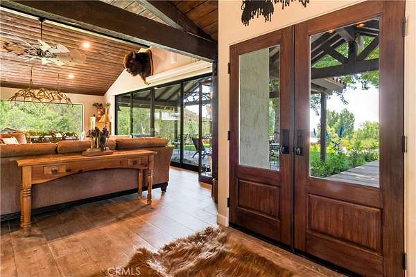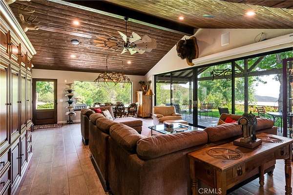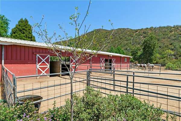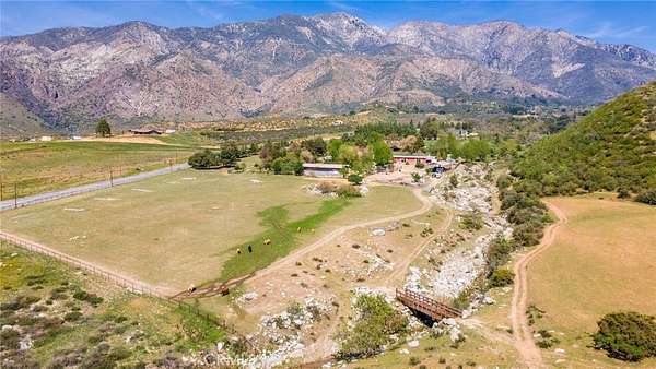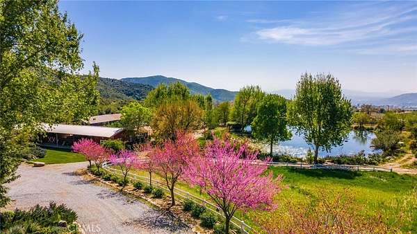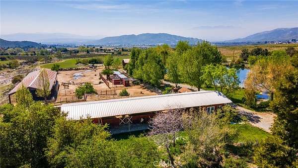 This 60+ acre estate is located at the gateway to the quaint Apple Community of Oak Glen and only 45 minutes from the Ontario International Airport. At 3600 feet elevation this ranch enjoys four seasons, clean air, cooler temperatures, and fabulous views. A creek runs through the property, and a half acre pond is stocked with bass, catfish and tilapia. Nature and wild animals abound all around. The pond beach area provides a space for ultimate relaxation with surrounding mountain views. Beautiful morning sunrises over the mountains and colorful sunsets in the evening with magnificent views of the city lights and surrounding mountains make every day special. The recent remodel open concept 2600 sf home overlooks the pond and pastures. Beautifully designed slide away doors, and huge windows maximize views in all directions. Natural stone and wood throughout and an open layout create a unique architectural presentation for enjoyment of nature and the outdoors. Numerous outbuildings including: A 24 x 100 horse barn with four stalls, tack room and a guest "bunkhouse" with granite counter tops and sleeping loft. Additional ranch structures include a 100-foot open pole barn, 80 foot closed sided Haybarn, 24 x 70 workshop, a modern out house, and several smaller buildings. Additional features include a round pen, several pastures, pipe and cable perimeter fencing, graded roads, two bridges at the creek and three wells that serve the property. The Property offers: The ultimate vacation destination, with air bnb opportunities. A working ranch with horse boarding and dry farmed pastures for grazing horses and cattle part of the year. Subdividing and development opportunities. 2 legal parcels. Both located in an Agricultural Preserve Overlay which allows for Williamson Act protection for reduced property taxes if the land is used for agricultural purposes. Inclusion in the Yucaipa Valley American Viticultural Area (AVA) offering the opportunity of developing a large vineyard and/or winery with a tasting room. Extraordinary landscaping and sloping terrain that present great photographic opportunities and an exceptional wedding venue opportunity. Private water wells as a source of water that is not dependent on a government agency, however, public water is available in Oak Glen Road. A peaceful daily breeze during the day and a cool mountain breeze during the night provide for optimum weather year-round. The large property affords peace, quiet and privacy.