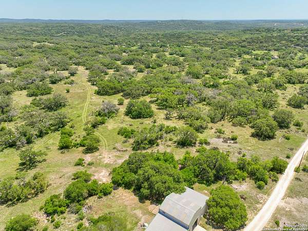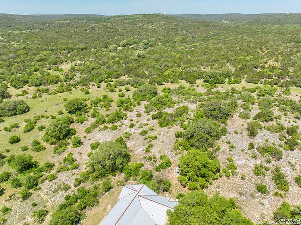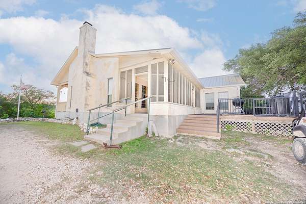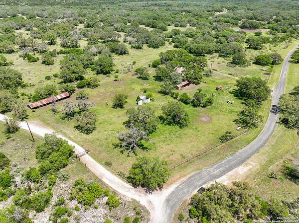 130 +/- Acres. Paved county road where you'll be greeted by an electric gated entrance to the main House which is 1860 sq. ft. with 3 bedrooms, 2 baths, with an open floor plan, large island, and an above-ground swimming pool with wrap-around deck which is great for entertaining. There are a lot of windows adorning natural light throughout, allowing you to take in the nature and local wildlife. There is 2 Edwards water wells, multiple outbuildings to include a barn complete with an office and upstairs storage, sheds, horse stalls, large chicken coop with hen house, currently yielding 16 eggs per day, so start your morning with fresh eggs on your porch watching the sun come up over the Texas Hill Country. The second house has its own gated entrance off the county road, and is surrounded by a high fence. It is 828 sq. ft., 1 bedroom, 1 bath needs some TLC. The Martin Creek (wet weather creek) traverses through the property, there is beautiful 30 foot rock cliffs, then divides and exits the property. Texas A&M students have explored the cave on the property that goes down into the Edwards Aquifer. The ranch is fenced and cross-fenced, currently running cattle and horses. The ranch has water lines running to several water troughs. There are horse stalls and cattle pens. The stock tank has a natural spring that maintains some water even in drought conditions. There are 4 hunting blinds and 4 feeders. The vegetation is your typical hill country: live oaks, junipers, cedars, persimmons, mountain laurels, and native grasses. The low fences allow a nice amount of native wildlife, including white-tailed deer, hogs, turkeys, coyotes, and other small animals. A small portion of this property is on the opposite side of the county road, currently grazing goats. Watch the attached video for a better idea of all that this property has to offer.