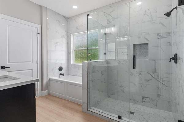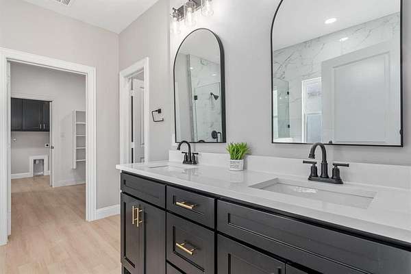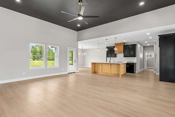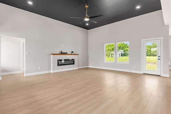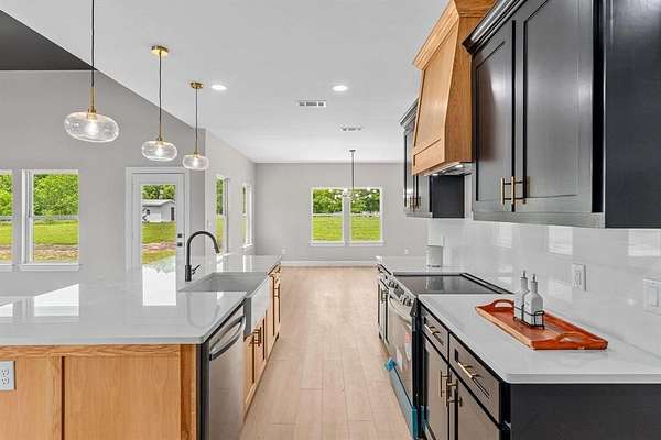 Wonderful lease opportunity on over 4 acres—enjoy the sights and sounds of nature while being just minutes from restaurants, shopping, and entertainment. The open-concept living room feels warm and inviting, featuring a fireplace and striking accent ceiling that adds character and comfort. The transitional kitchen blends classic design elements with a modern aesthetic, offering updated amenities that make everyday living both stylish and functional. The second suite provides added convenience and flexibility. The spacious primary suite features a walk-in closet with direct access to the laundry room and a beautifully designed black-and-white bathroom complete with a jetted tub, double vanities, and a large shower with a sleek glass enclosure. Offering the perfect balance of peaceful country living and everyday convenience, this property is a rare lease opportunity you won’t want to miss.