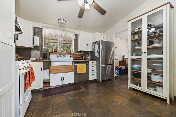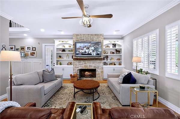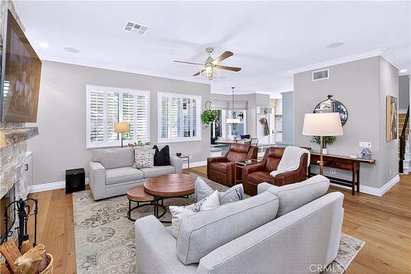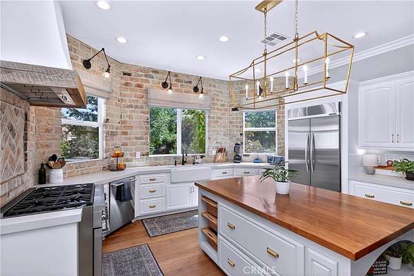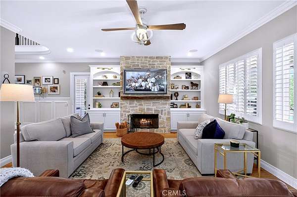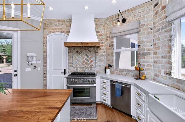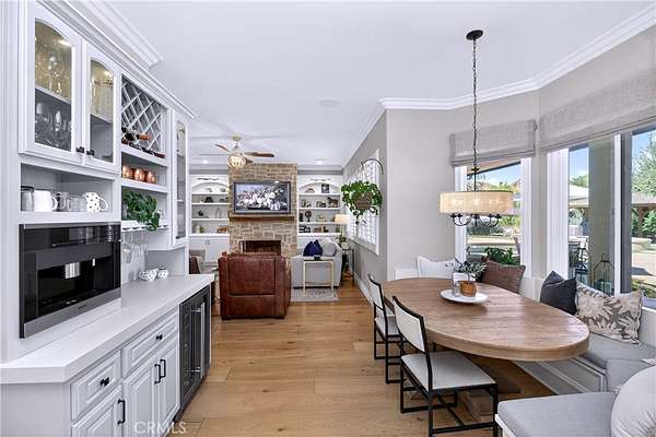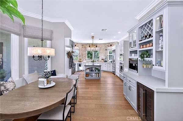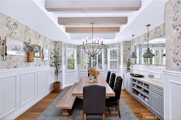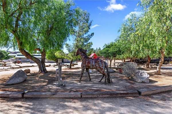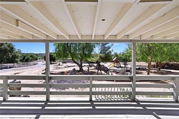 Welcome to Fallen Oak Ranch--an extraordinary equestrian estate perfectly situated in Temecula's Wine Country, just minutes from award-winning wineries, restaurants, & shopping. The custom-built main residence blends rustic charm with modern sophistication. The designer chef's kitchen is a showpiece with exposed brick walls, sleek quartz counters, a rich wood-topped island with built-in storage, farmhouse sink, & top-of-the-line stainless appliances including a professional-grade range & oversized refrigerator. Gold hardware, custom cabinetry, & designer lighting create a warm yet refined atmosphere--ideal for entertaining or everyday living. The formal dining room is timeless & inviting with custom wainscoting, soft wallpaper, exposed beams, & a statement chandelier. Natural light pours through plantation shutters onto warm wood floors & a built-in buffet with open shelving--perfect for elegant dinners or festive gatherings. The family room offers relaxed sophistication with a stone fireplace, custom built-ins, & natural light. Plantation shutters, crown molding, & wood floors complete the picture, creating a space that's both stylish & comfortable.