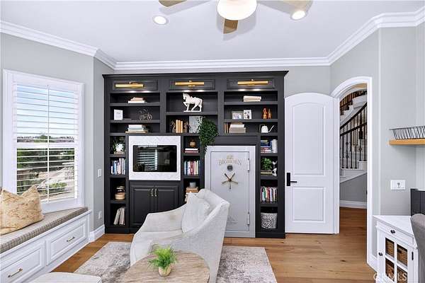 - 2 Staircases, 2+ Access Exits, Bar, Beamed Ceilings, Built-In Features, Ceiling Fan(s), Coffered Ceiling(s), Custom Covering Window Features, Double Door Entry, High Ceilings, In-Law Floorplan, Open Floorplan, Pantry, Quartz Counters, Recessed Lighting, Storage, Tray Ceiling(s), Two Story Ceilings, Wainscoting, Wired For Data, Wired For Sound