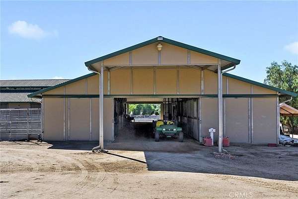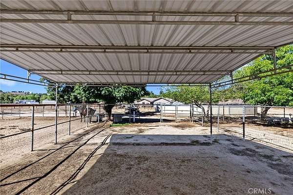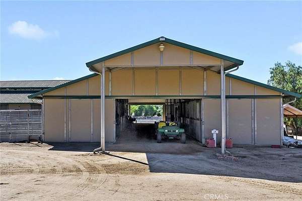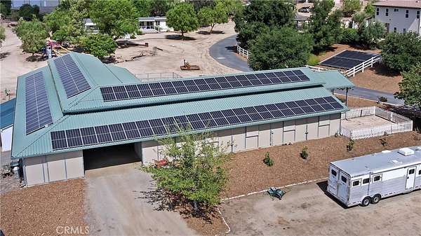 The home includes five spacious bedrooms, five baths, & an office. The luxurious primary suite features a cozy fireplace, wood-paneled ceiling, dual walk-in closets, & a spa-inspired bath with jacuzzi tub & large shower. Additional highlights include surround sound, plantation shutters, dual A/C units, & expansive covered patios for outdoor entertaining. A separate manufactured home offers 2 bedrooms, 2 baths, an office, covered patios, & enclosed yard--ideal for guests, staff, or rental income. Foreman's quarters with 2/1 bath. Equestrian facilities are top-tier with a Blue Ribbon barn offering 16 stalls (8 with runs), automatic waterers, fly spray system, tack room, office, & two wash racks. Riders will love the lighted arena (approx. 130x250)), 60' round pen, hot walker, & six large outdoor pens with shelters. Sustainably equipped with owned solar (68 panels, 55 kWh storage), high-producing well with five holding tanks, & 2 RV pads with hookups with 50-amp service & waste dump. Fully fenced & gated, the ranch offers peace, privacy, & stunning views of the surrounding hills.
